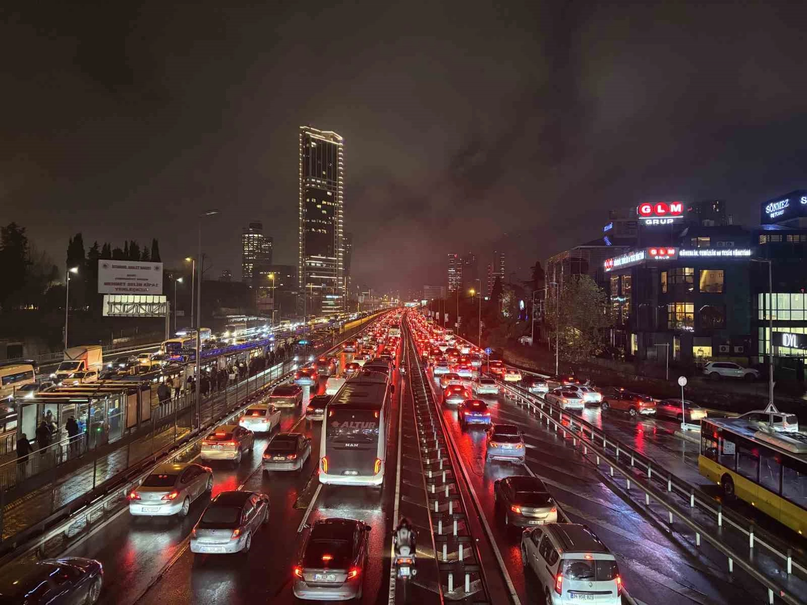 İstanbul’da trafik yoğunluğu yağışın da etkisiyle yüzde 90’a kadar ulaştı. Mesai bitimiyle kamyon ve ağır vasıtaların trafikte olması ise dikkat çekti.