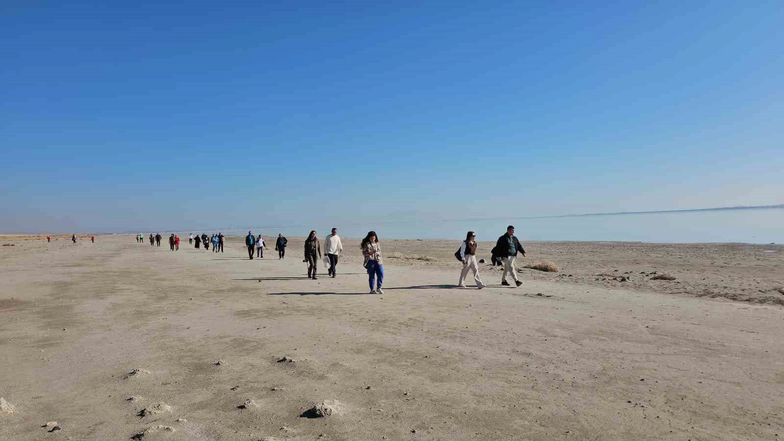 Arin köyünden başlayıp 15 kilometre yürüyüş yaparak göldeki tehlikeye dikkat çeken grup üyeleri gölün kurumasının kuşların yaşam alanını tehdit ettiğini belirtti.