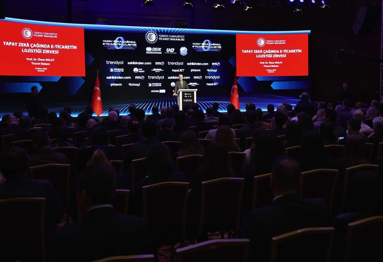 Ticaret Bakanı Ömer Bolat, ‘Yapay Zeka Çağında e-Ticaret’in Lojistiği Zirvesi’ programında yaptığı konuşmada, e-ticaret ve lojistiğin küresel ticaretteki kritik rolüne dikkat çekti.
