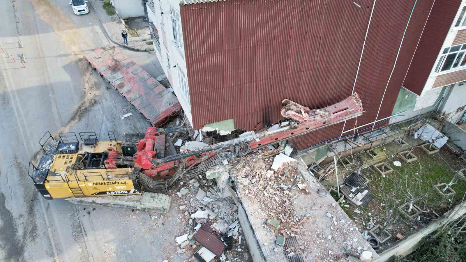 Yapılan teknik incelemeler doğrultusunda vincin binaya ve çevreye zarar vermeden çıkarılması için titiz bir çalışma yürütülüyor.