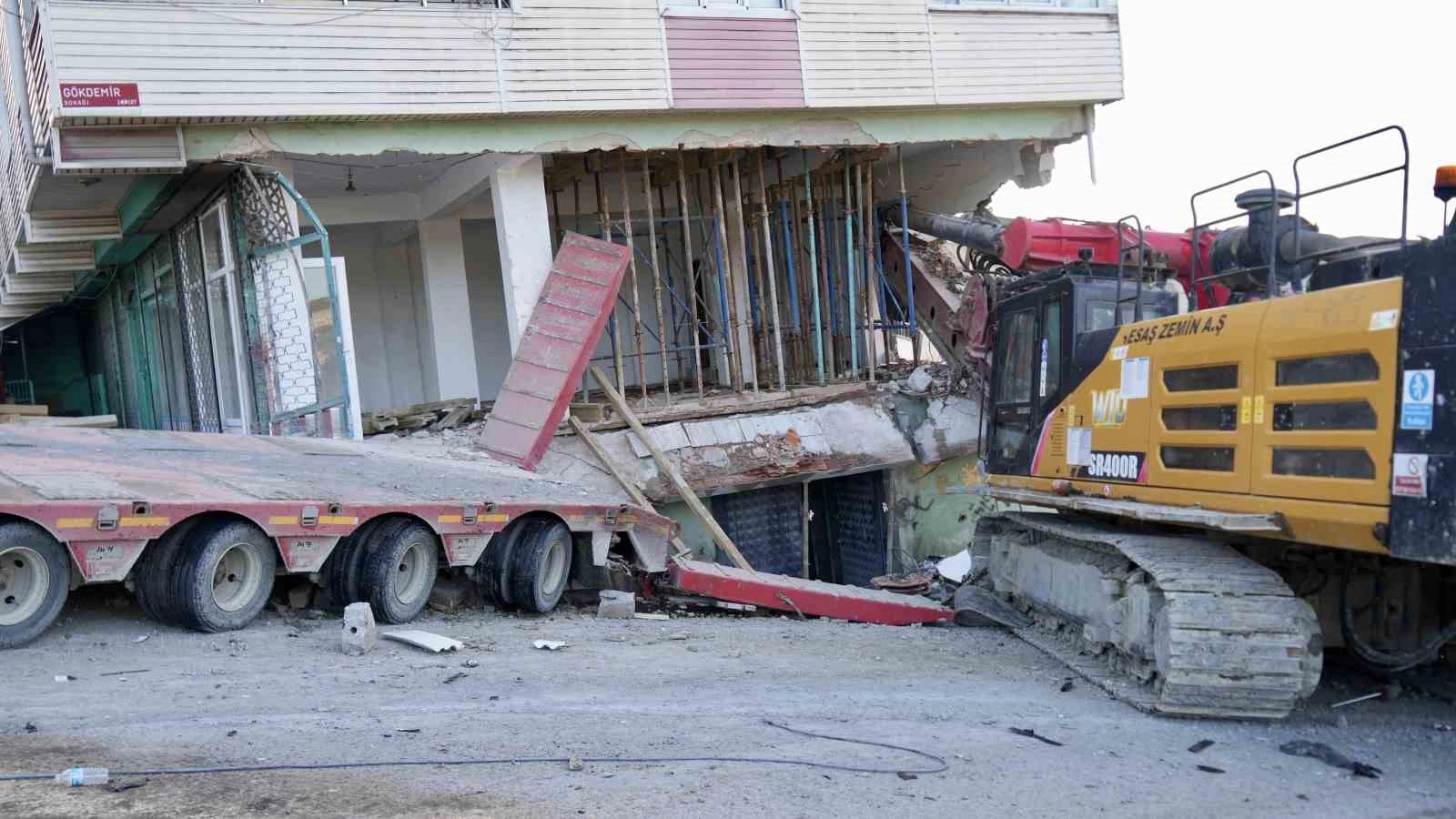 Vinci çıkarma çalışmaları 28. saate girerken, mühendisler tarafından bina içinde kolonların bulunduğu noktalara güçlendirme amaçlı demir destekler yerleştirildi.