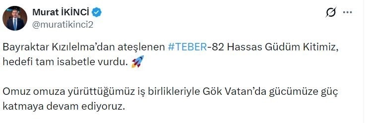 Aselsan Genel Müdürü Ahmet Akyol ise, "Milli gururumuz Bayraktar KIZILELMA’dan milli mühimmatlarla tam isabet! Savunma sanayimizin güçlü iş birliği sayesinde, harp sahasında oyun değiştirici kabiliyetleri ülkemize kazandırmaya devam ediyoruz" notunu düştü.