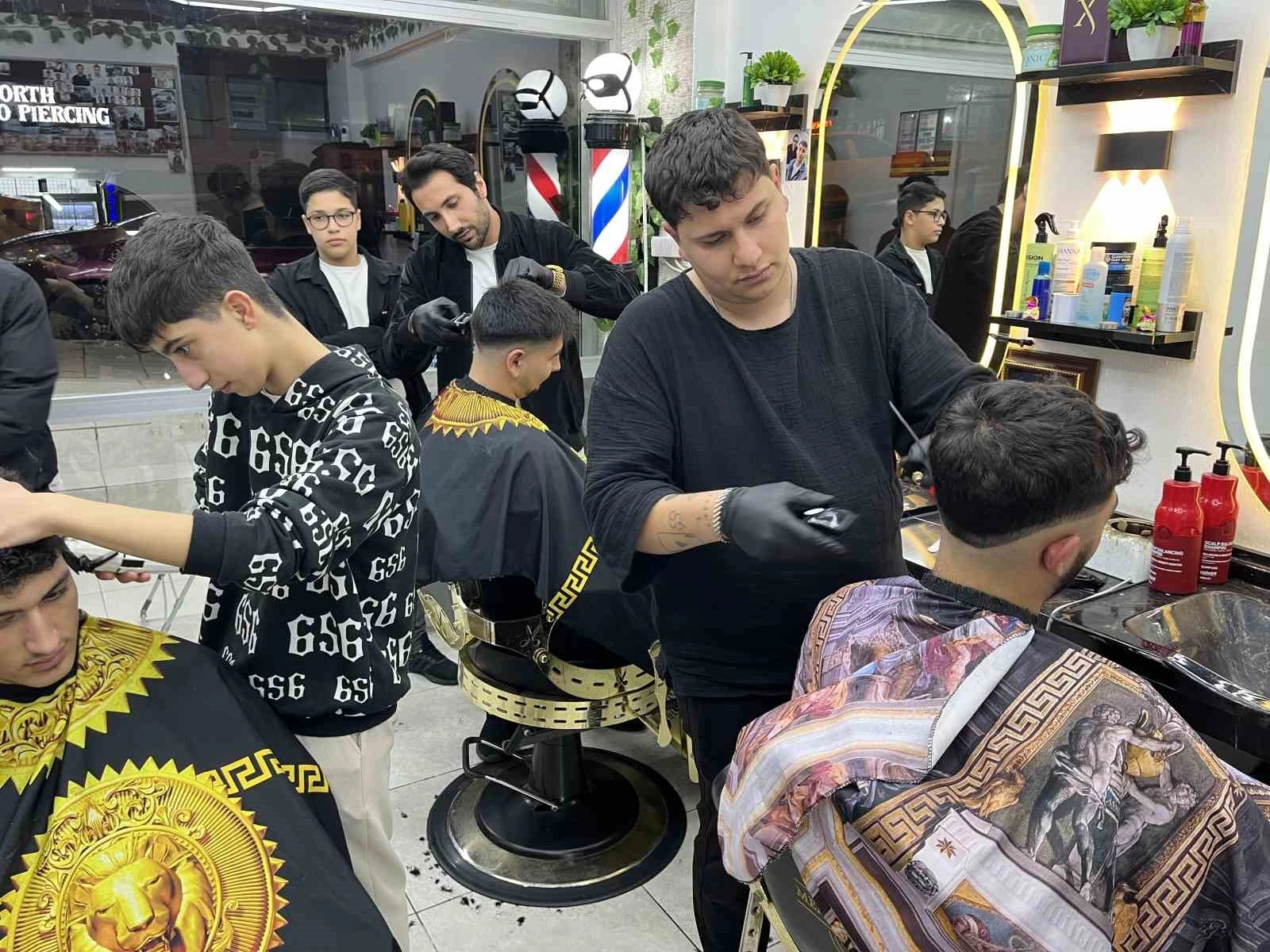 Ramazan Bayramı arifesinde kent genelindeki berberlerde büyük yoğunluk oluştu.