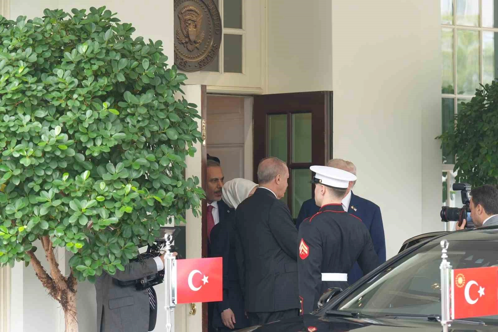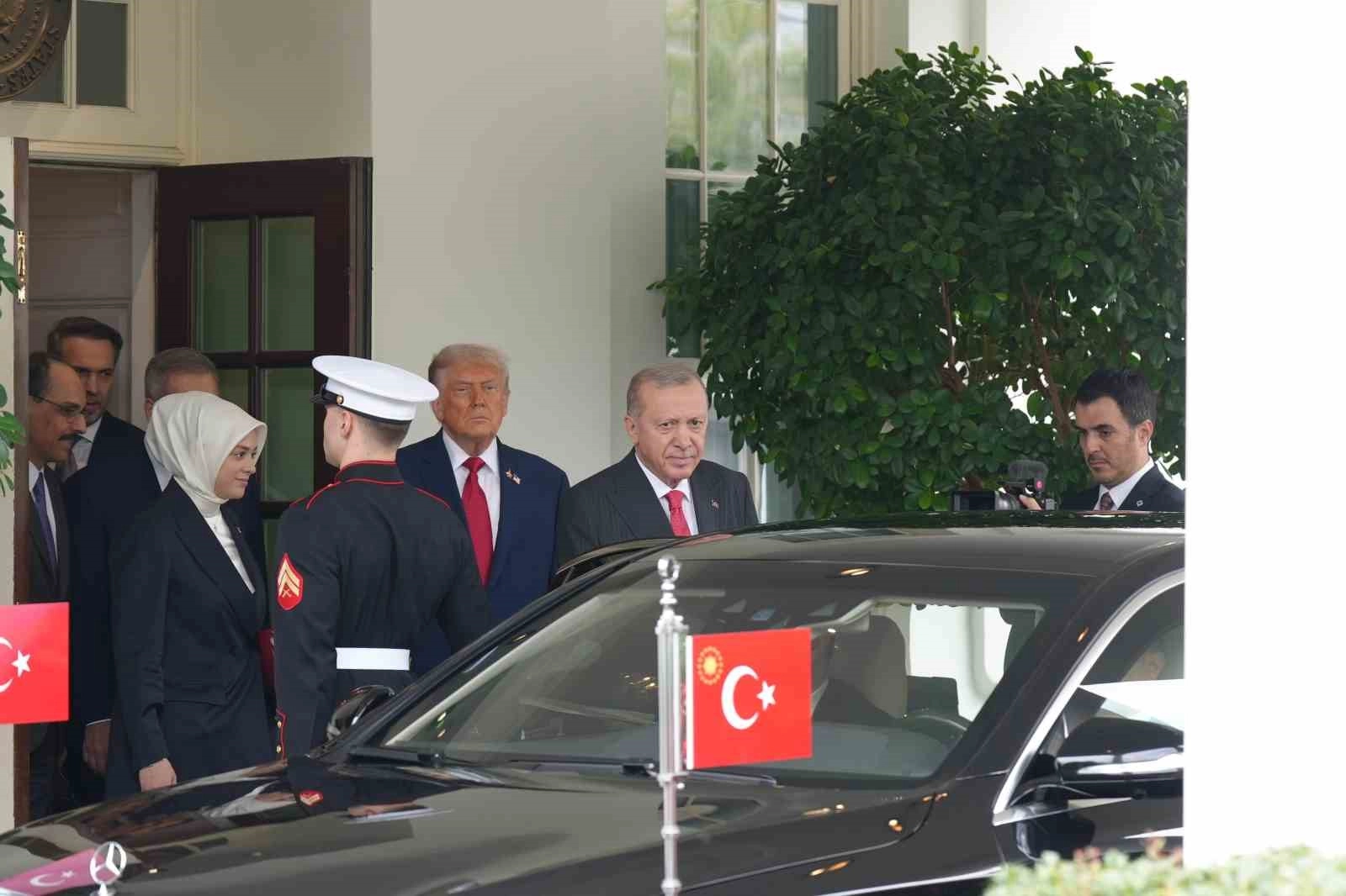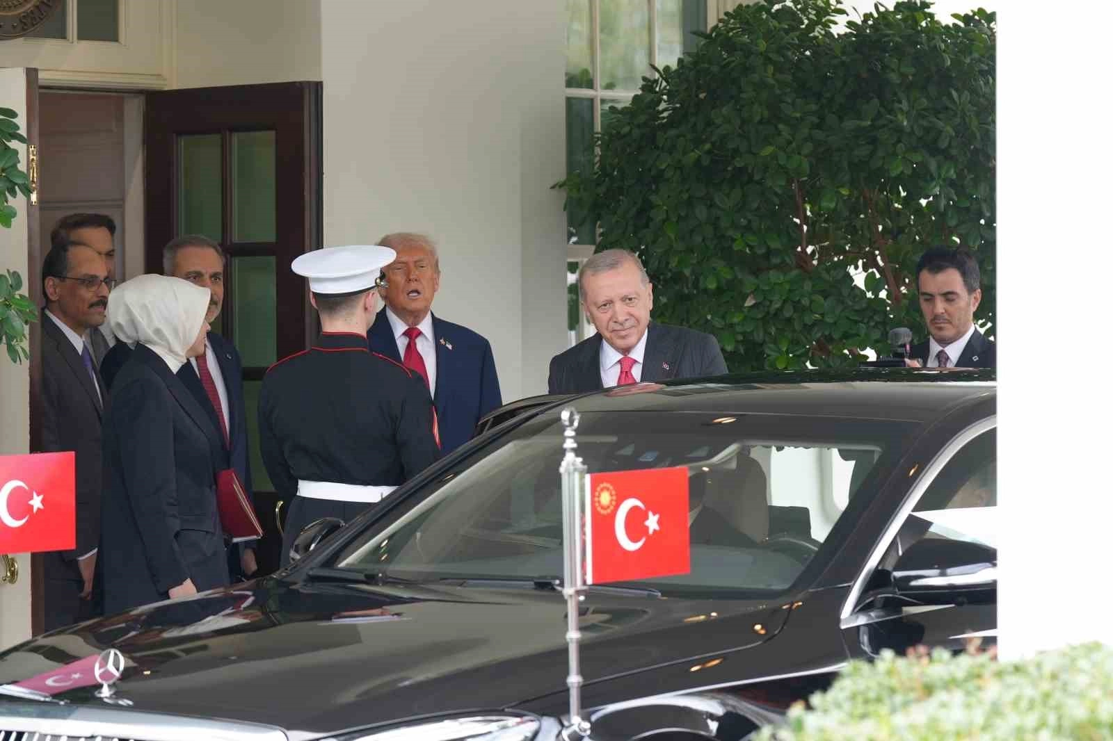 Görüşmenin ardından Trump, Cumhurbaşkanı Erdoğan’ı makam aracına kadar uğurladı. Trump’ın ayrıca uğurlama sırasında Dışişleri Bakanı Hakan Fidan, MİT Başkanı İbrahim Kalın, Enerji ve Tabii Kaynaklar Bakanı Alparslan Bayraktar ve diğer yetkililer ile ayaküstü sohbet ettiği görüldü.