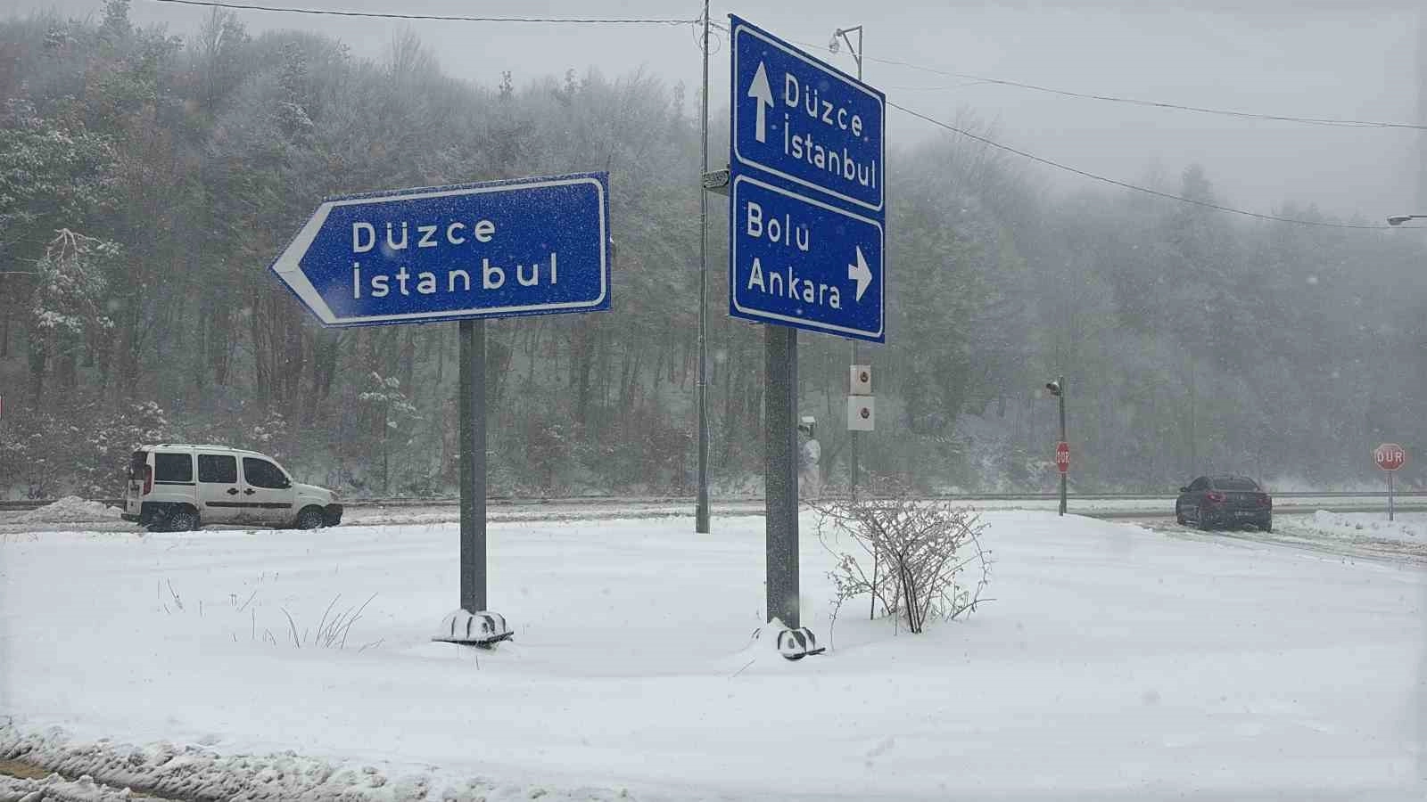 İstanbul ile Ankara arasında ulaşımı sağlayan D-100 kara yolunun Bolu Dağı kesiminde gece saatlerinde kar yağışı başladı.