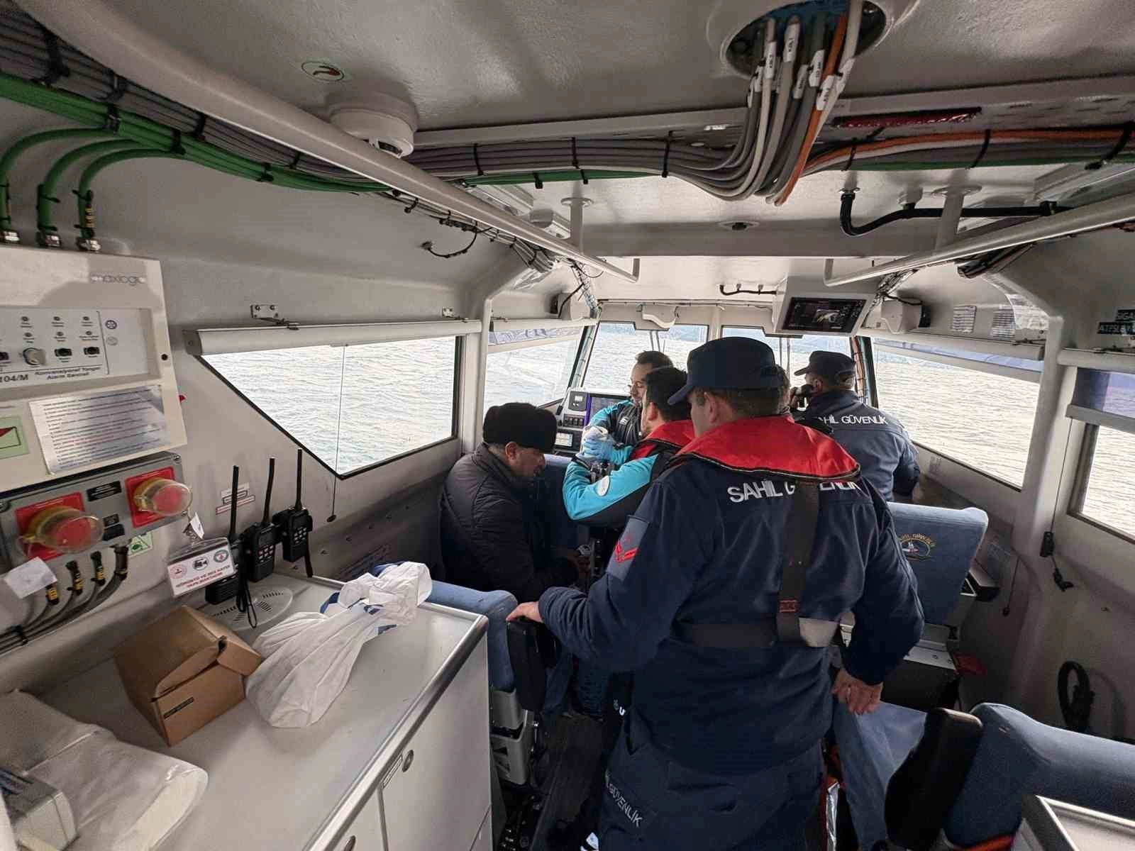 Rahatsızlanan şahıs ‘KB-10’ Sahil Güvenlik Botu ve sağlık ekipleri tarafından sağ ve bilinci açık bir şekilde alındı. Karaya çıkarılan hasta ambulansla hastaneye kaldırıldı.