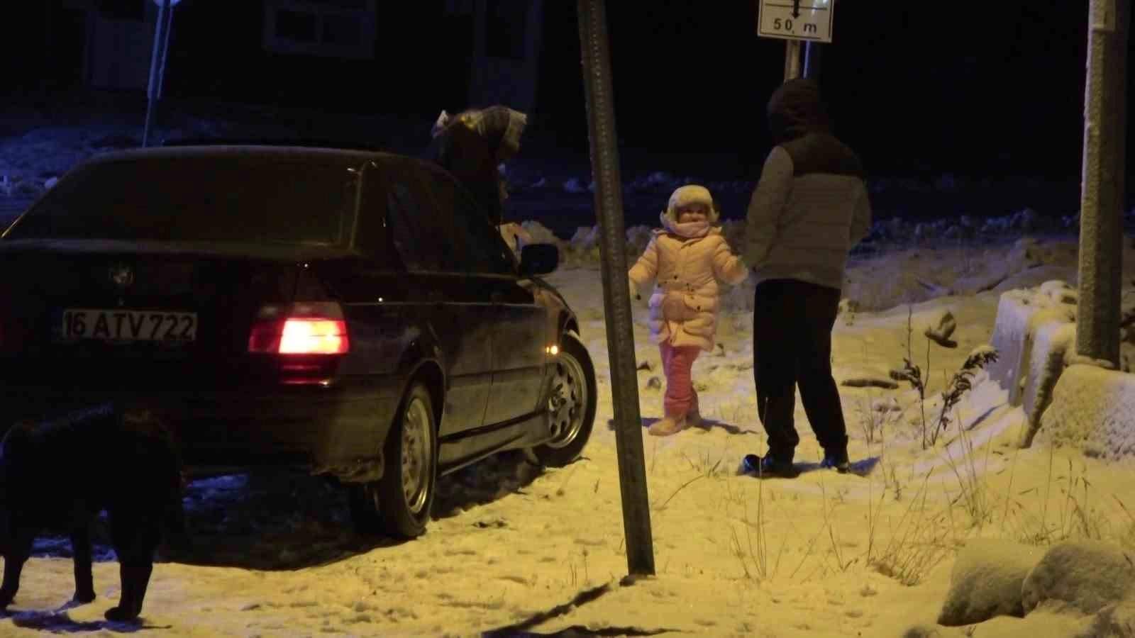 Kar kalınlığı 5 santimetrenin üzerinde seyrederken vatandaşlar dondurucu soğuğa aldırış etmeden gece yarısı Uludağ’a akın etti.