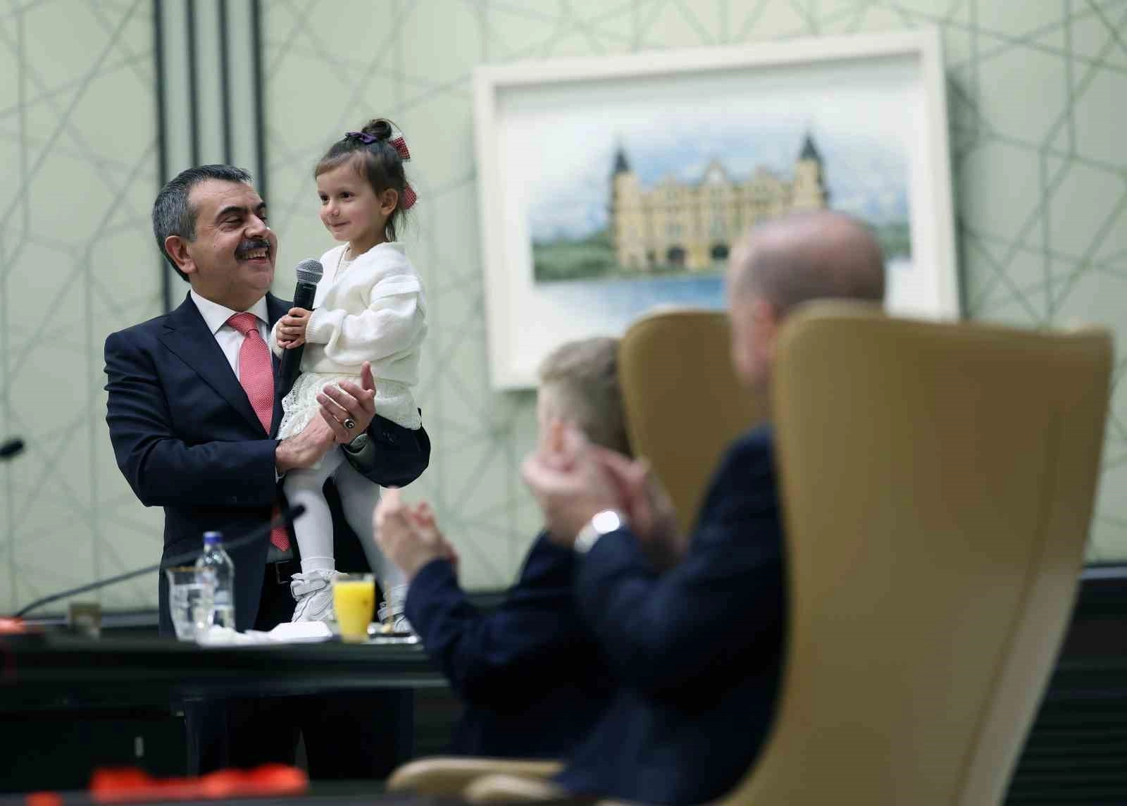 Minikler hem sorular sordu hem de şiirler okudu. Kendi yazdığı şiir kitabını Cumhurbaşkanı Erdoğan’a hediye eden 2. sınıf öğrencisi Bengü Yeşilbaş, Cumhurbaşkanı Erdoğan’a yazdığı akrostiş şiiri okudu.