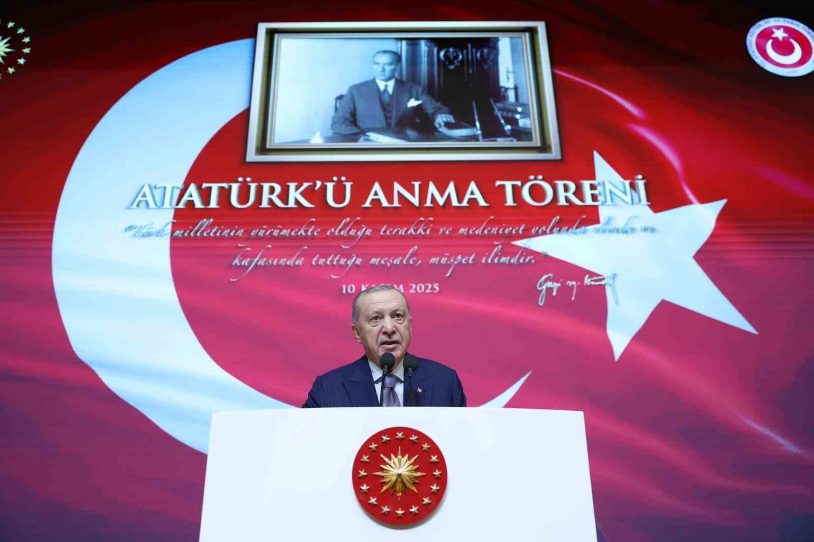 Cumhurbaşkanı Erdoğan, devletin ilk Cumhurbaşkanı, İstiklal Harbinin başkomutanı Gazi Mustafa Kemal Atatürk’ün, zorluklarla ve engellerle dolu bir mücadelenin ardından bağımsız, modern ve yeni Türkiye’nin temellerini attığını belirterek, "Gazi, harp sahalarında kazanılan askeri başarılarda olduğu gibi yeni devletimizin birçok alandaki dönüşümüne de liderlik etmiştir. 10 Kasımlar aslında hem bu dönüşümü anlamak, hem de verilen mücadelenin boyutlarını kavramak açısından önemli bir vesile teşkil etmektedir. Bunu özellikle şunun için söylüyorum. Son dönemde milli günlerimizle ilgili yıkıcı, yıpratıcı, toplumsal fay hatlarını kaşıyan tartışmaların gündeme taşınmak istendiğini görüyoruz. Güya Cumhuriyetimizi yüceltmek adına şanlı tarihimizi yok sayanlar ile 102 yıllık Cumhuriyet tecrübesini önemsizleştirmeye çalışanlar, zahirde tezat içinde görünmekle birlikte esasında aynı amaca hizmet ediyorlar" açıklamasını yaptı.