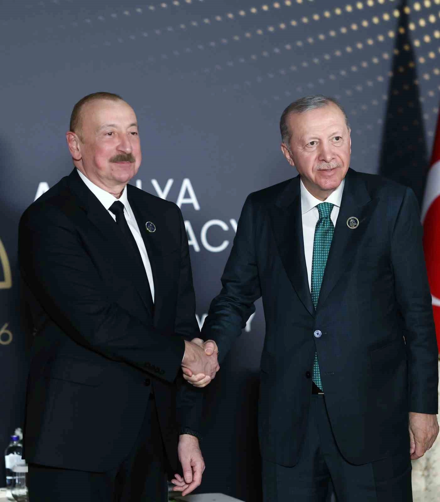 Cumhurbaşkanı Recep Tayyip Erdoğan, Antalya Diplomasi Formu kapsamında Azerbaycan Cumhurbaşkanı İlham Aliyev ile bir araya geldi.