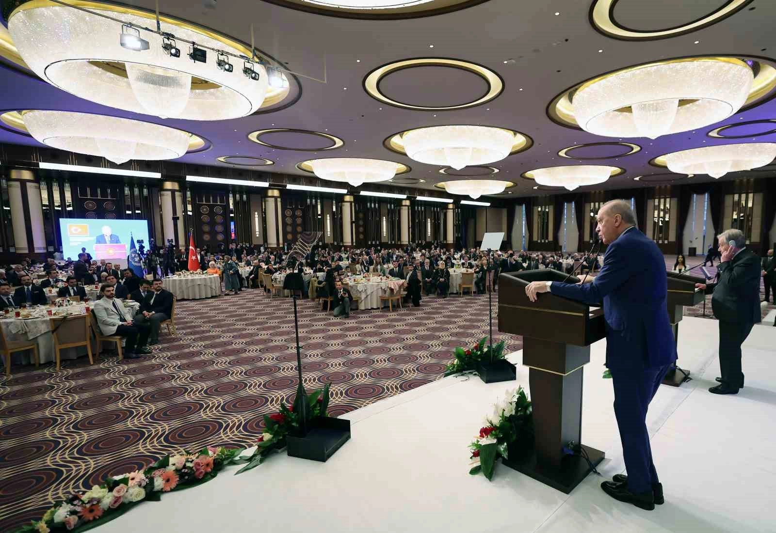 Cumhurbaşkanı Erdoğan, BM Genel Sekreteri Guterres’e ’Atatürk Uluslararası Barış Ödülü’nü takdim etti. Törenin ardından iftar yemeğine geçildi.