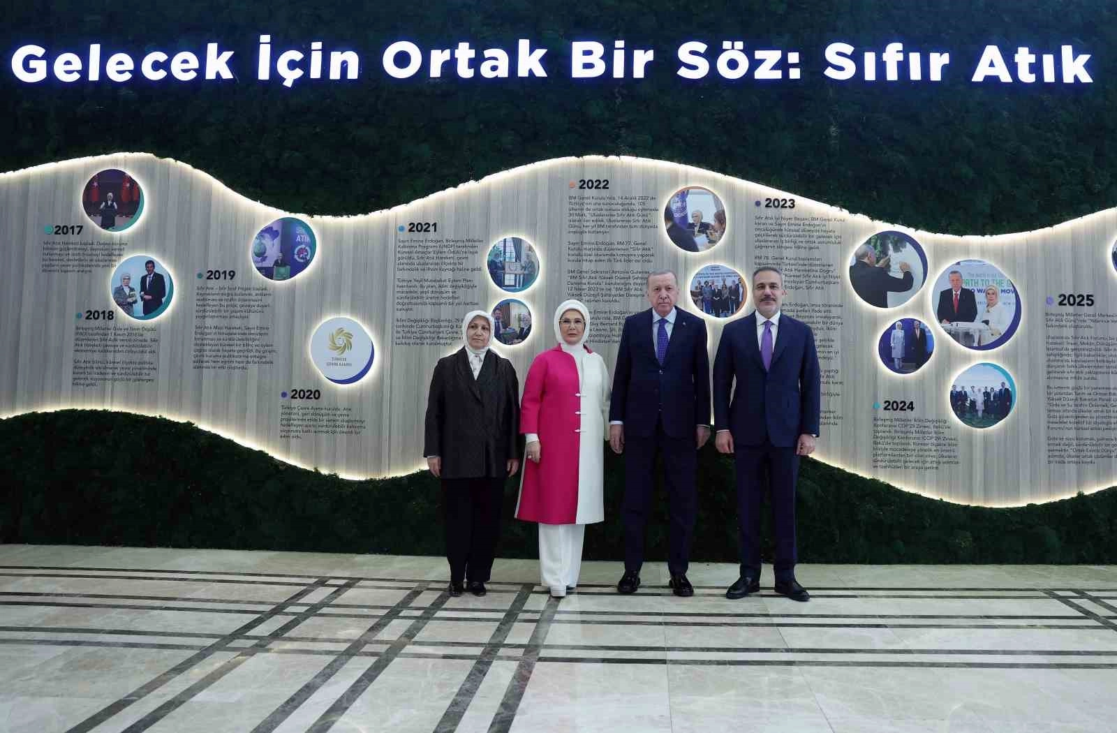 Bir diğer hususun, terör örgütleri ve organize suç çeteleriyle mücadele olduğunu kaydeden Erdoğan, 15 Temmuz darbe girişiminin faili FETÖ’nün yurt dışındaki uzantılarıyla mücadelenin aynı kararlılıkla devam ettirilmesi gerektiğine dikkat çekti. Erdoğan, "Türkiye düşmanlarının maşasına dönüşen bu ihanet şebekesinin, ülkemiz ve demokrasimiz açısından tekrar bir tehdit oluşturmasına izin veremeyiz. Türkiye Maarif Vakfı’nın desteklenmesi, bu noktada elimizi güçlendirecektir. Çevre sorunları, kirlilik ve iklim krizi, insanlığın geleceğini tehdit ediyor. 2053 vizyonumuz çerçevesinde burada da sorumluluk alıyor, iklim kriziyle küresel mücadeleye gerekli desteği sunuyoruz. Eşim Emine Erdoğan Hanımefendi’nin himayesinde yürütülen ‘Sıfır Atık’ projemiz, bugün dünyada örnek teşkil eden bir girişim haline geldi. Önümüzdeki dönemde sıfır atığa ilişkin farkındalığı artırmamız, dünya genelinde en iyi sıfır atık uygulamalarını tespit ederek bunları ulusal ve küresel düzeyde hayata geçirmemiz önem taşıyor. Biliyorsunuz, gelecek sene COP31 Zirvesi’ne Antalya’da ev sahipliği yapacağız. NATO liderler zirvesiyle 13. Türk Devletleri Teşkilatı Zirvesi de Türkiye’de gerçekleştirilecek. İnşallah bu zirveleri, sizlerin de katkısı, desteği, gayretiyle Türkiye’ye ve Türk milletine yakışır şekilde icra edeceğiz" ifadelerini kullandı.