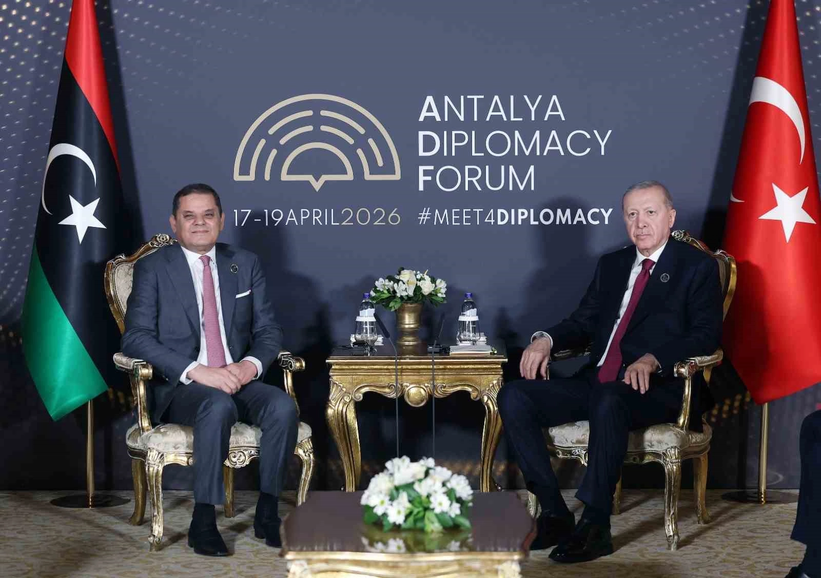 Cumhurbaşkanı Erdoğan, 5. Antalya Diplomasi Forumu (#ADF2026) için Türkiye’de bulunan Libya Milli Birlik Hükümeti Başbakanı Abdülhamid Dibeybe bir araya geldi.