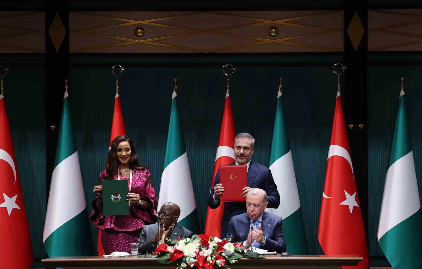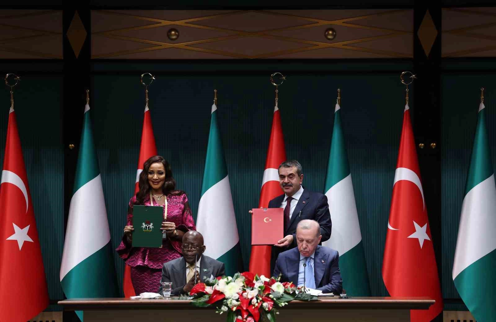 "Türkiye Cumhuriyeti Kültür ve Turizm Bakanlığı Yurtdışı Türkler ve Akraba Topluluklar Başkanlığı ile Diasporadaki Nijeryalılar Komisyonu Arasında Diaspora Siyasası Alanında İşbirliği Mutabakat Zaptı. Türkiye Cumhuriyeti Hükümeti ile Nijerya Federal Cumhuriyeti Hükümeti Arasında Medya ve İletişim Alanında Mutabakat Zaptı. Türkiye Cumhuriyeti ile Nijerya Federal Cumhuriyeti Yükseköğretim Alanında İşbirliğine İlişkin Mutabakat Zaptı. Türkiye Cumhuriyeti Helal Akreditasyon Kurumu ile Nijerya Ulusal Akreditasyon Sistemi Arasında Helal Kalite Altyapısı Alanında Mutabakat Zaptı. Ekonomi ve Ticaret Ortak Komitesi (JETCO) Tesis Eden Ortak Bildiri. Türkiye Cumhuriyeti Hükümeti ile Nijerya Federal Cumhuriyeti Hükümeti Arasında Askeri İşbirliği Protokolü. Türkiye Cumhuriyeti Hükümeti ile Nijerya Federal Cumhuriyeti Hükümeti Arasında Eğitim Alanında İşbirliği Anlaşması. Türkiye Cumhuriyeti Dışişleri Bakanlığı Diplomasi Akademisi ile Nijerya Federal Cumhuriyeti Dışişleri Bakanlığı Dışişleri Akademisi Arasında İşbirliği Mutabakat Zaptı. Türkiye Cumhuriyeti Aile ve Sosyal Politikalar Bakanlığı ile Nijerya Federal Cumhuriyeti Kadın İşleri Bakanlığı Arasında İşbirliğine Dair Mutabakat Zaptı."