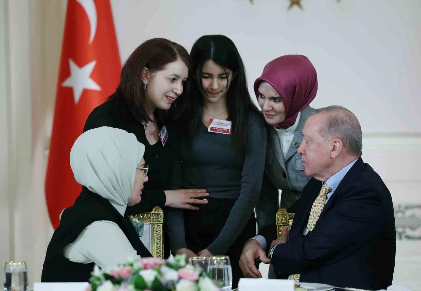 Şehit yakınları için son 23 yılda daha önce gündemde bile olmayan nice hizmeti, imkanı, hakkı, kolaylığı devreye aldıklarını dile getiren Erdoğan, "İlave istihdam hakkından aylıklara, gazilerimize bakım desteğinden araç alımında ÖTV muafiyetine. Yavrularımızın özel eğitim kurumlarından ücretsiz yararlanmasından, faturalarda ve seyahatlerde indirim hakkına çok geniş bir yelpazede şehit yakınları ve gazilerimizin yanında olduk. Şurası da son derece önemlidir; 1995 ile 2002 yılları arasında sadece 6 bin 315 şehit yakını ve gazimizin kamuda istihdamı sağlanmıştı. 18 Eylül’de 630 atama ile bu sayı 52 bine ulaştı. Şehitlerimizin aziz hatıralarını yaşatmak için 4 bin 227 okul, cadde, sokak ve kamu alanına onların isimlerini verdik. Kıbrıs Barış Harekatı şehitlerimizin ailelerine ve gazilerimize 31 bin 271 madalya tevcihini tamamladık. Daha burada sayamayacağımız pek çok hizmeti ve imkanı Allah’a hamdolsun şehit yakınlarımızın istifadesine sunduk. Aile, İçişleri ve Milli Savunma Bakanlıklarımız bir yandan, Milli Savunma Komisyonumuz diğer yandan. AK Partimizin ilgili birimleri bir başka koldan seferberlik ruhuyla şehit yakını ve gazilerimizin derdiyle yakından dertlenmekte talep ve beklentilerine çözüm üretmektedir. Şehit yakınları ve gazilerimizin her an yanında yakınında olmaya çalışan bakanlıklarımızı ve tüm kurumlarımızı yürekten tebrik ediyorum. İnşallah bundan sonra da sizi asla yalnız bırakmayacak sizlere her türlü desteği vermeyi sürdüreceğiz" ifadelerini kullandı.
