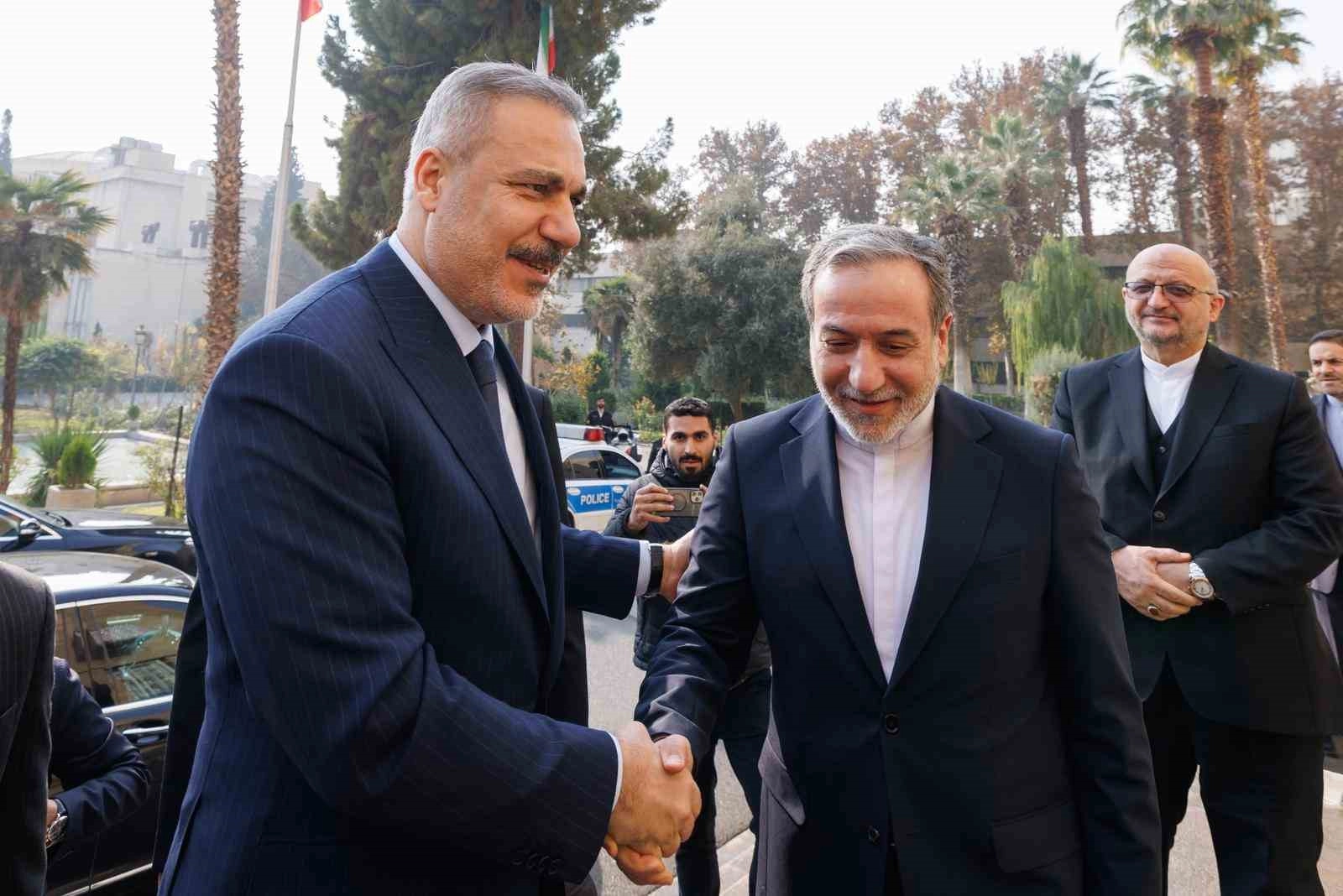 Bakan Fidan, İran Dışişleri Bakanlığı’nda mevkidaşı Abbas Arakçi tarafından karşılandı. İki bakan, karşılamanın ardından ikili ve heyetler arası görüşmeler için bir araya geldi.