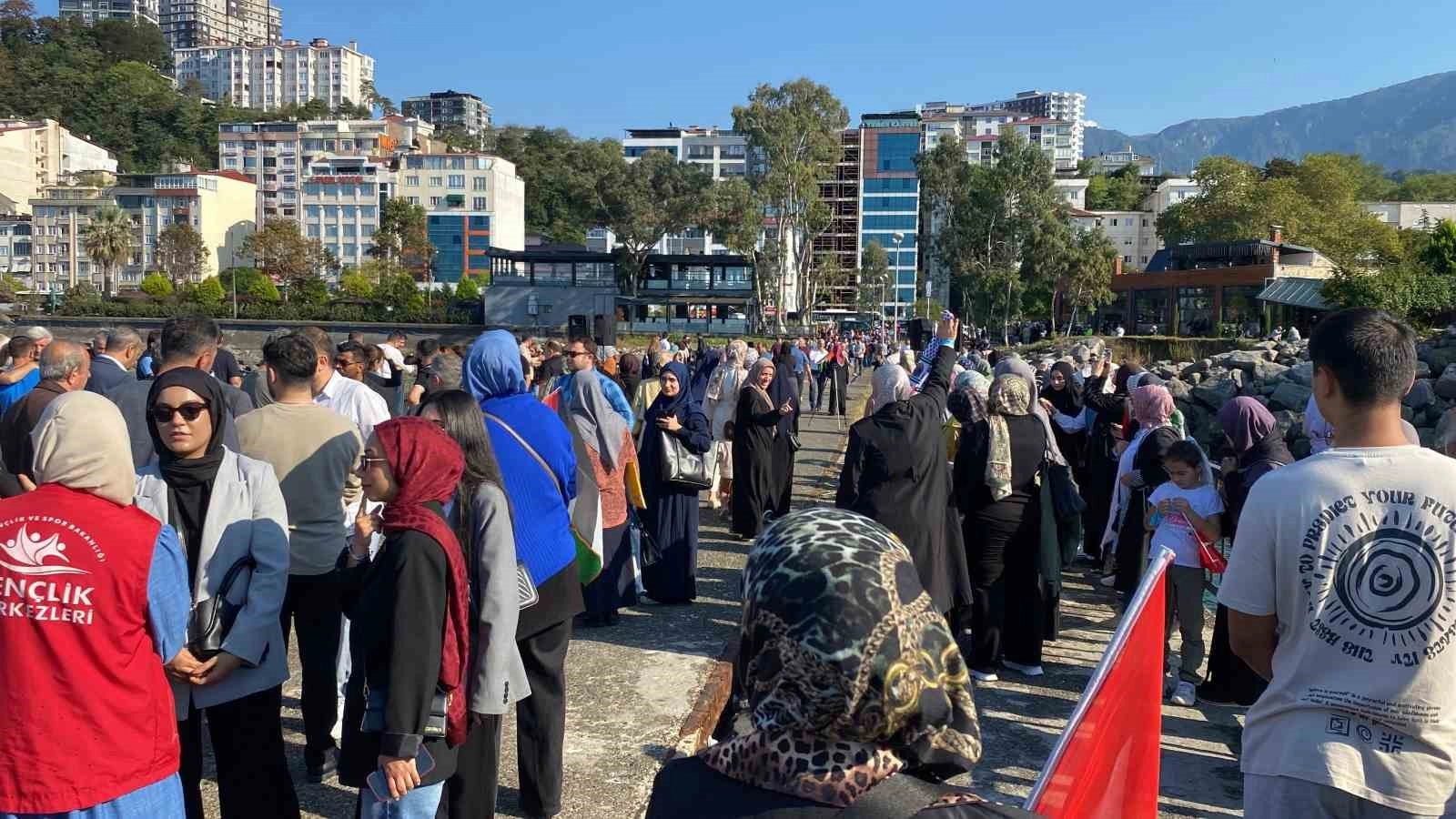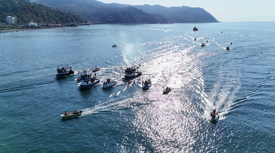Karadeniz açıklarında bir süre yol alan tekneler, daha sonra Hopa İskelesi’ne ulaştı. Burada toplanan vatandaşlar, denizden gelen konvoyu alkışlarla karşıladı.
