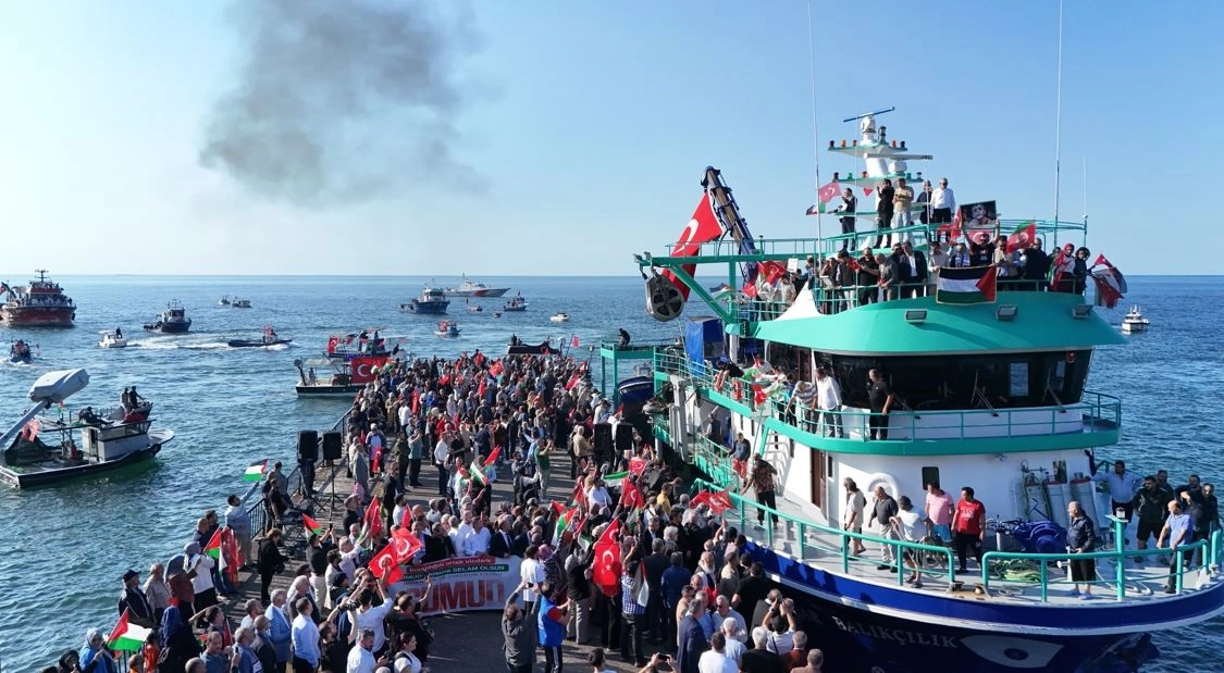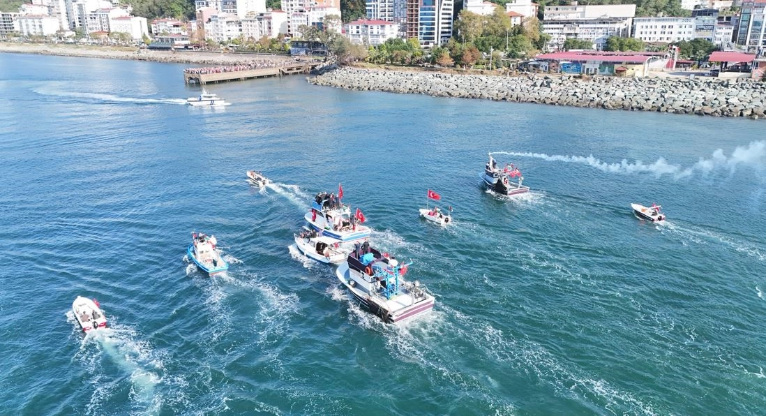 Filistin’e Destek Platformu öncülüğünde organize edilen programda Arhavi Balıkçı Barınağı’nda toplanan tekne ve gemiler, Türk ve Filistin bayraklarıyla süslenerek denize açıldı.
