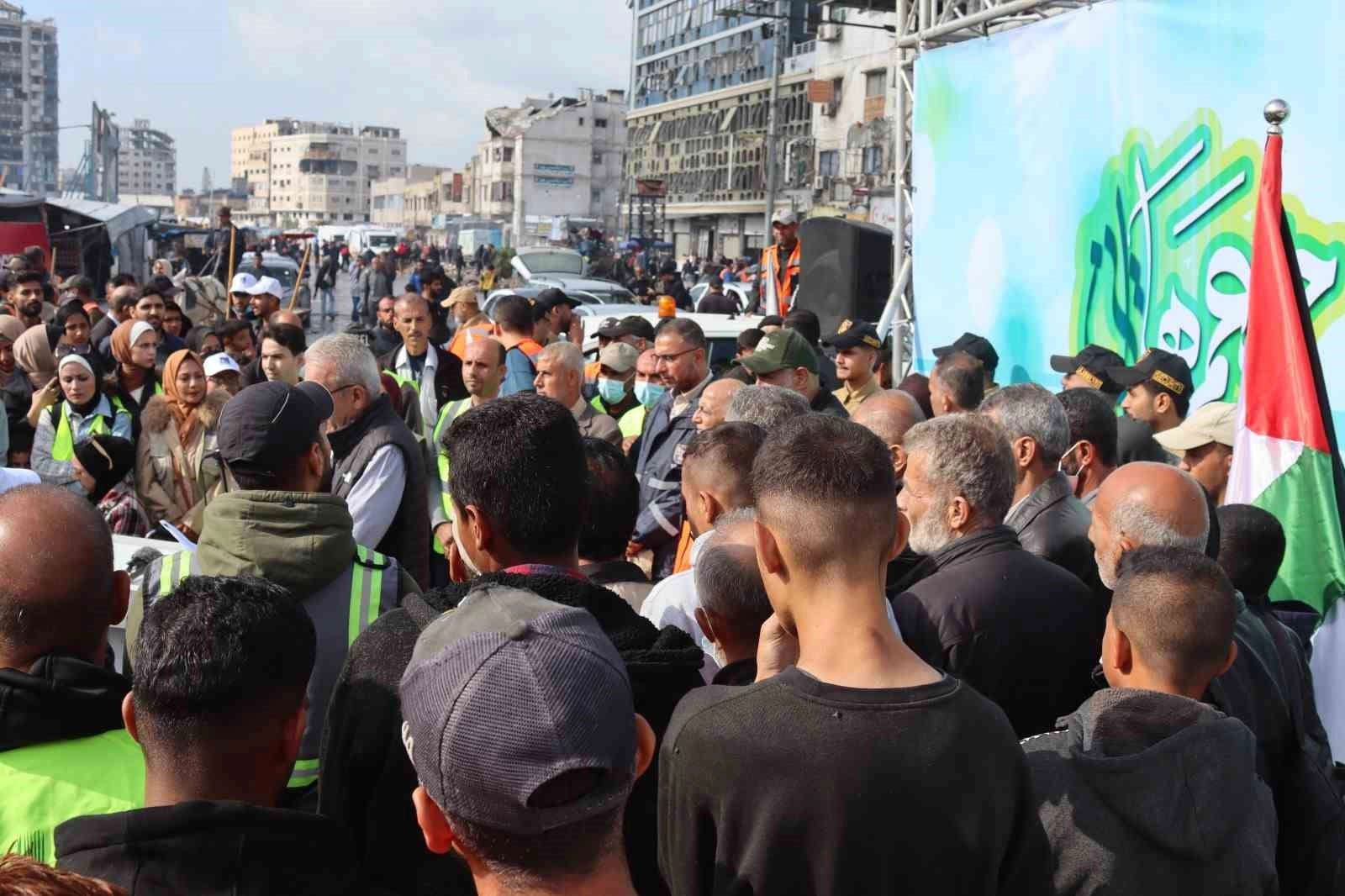 Gönüllülerin kampanya kapsamında ilk durağı ise Gazze Şehri’nin merkezindeki Saraya kavşağı oldu.