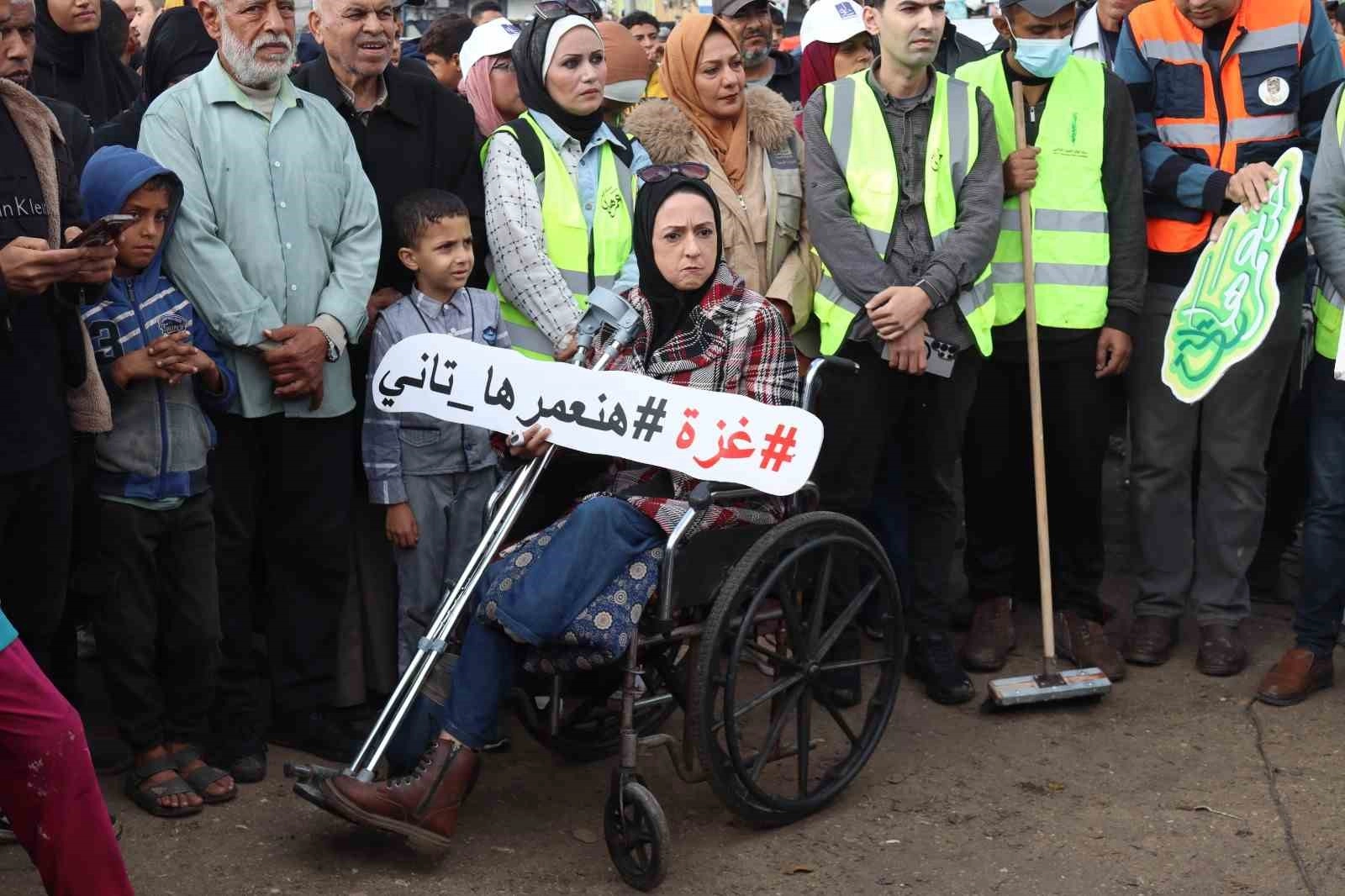 Gazze Belediyesi’nin İsrail saldırılarında büyük yıkım gören şehirde başlattığı "Yeniden İnşa Edeceğiz" kampanyasına katılan gönüllüler, cadde temizliği, enkaz kaldırma ve ağaç dikme çalışmalarıyla şehri yeniden ayağa kaldırmak için seferber oldu.