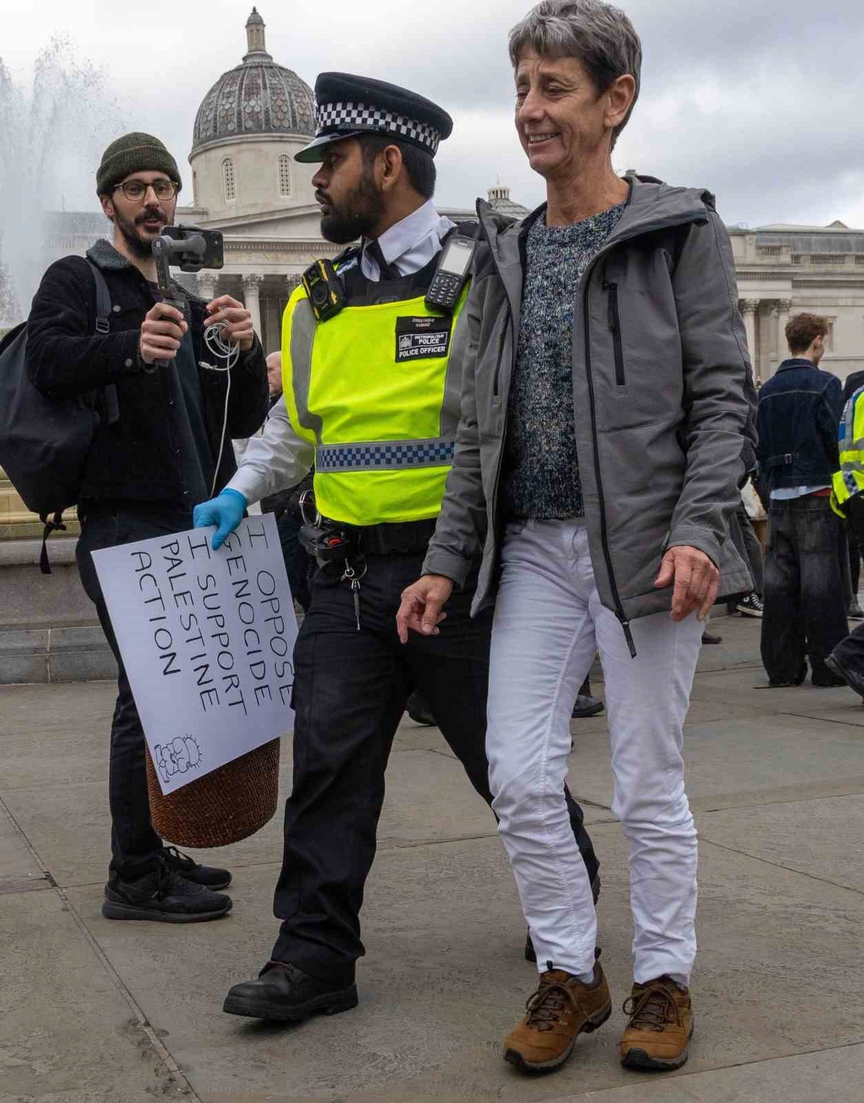 Londra polisi, protestoların başlamasından kısa bir süre sonra kalabalığa müdahale ederek göstericileri gözaltına almaya başlamış, gözaltına alınan kişiler direnmeden kalabalığın arasından geçirilirken, diğer göstericiler "Yazıklar olsun" sloganları atmıştı.