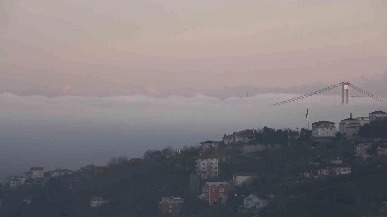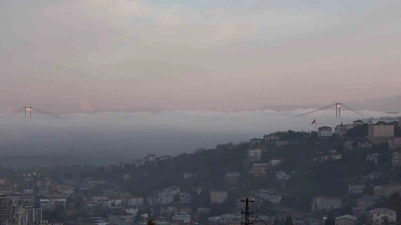 Görüş mesafesinin azalmasıyla birlikte Fatih Sultan Mehmet Köprüsü tamamen sis tabakasının altında kaldı.