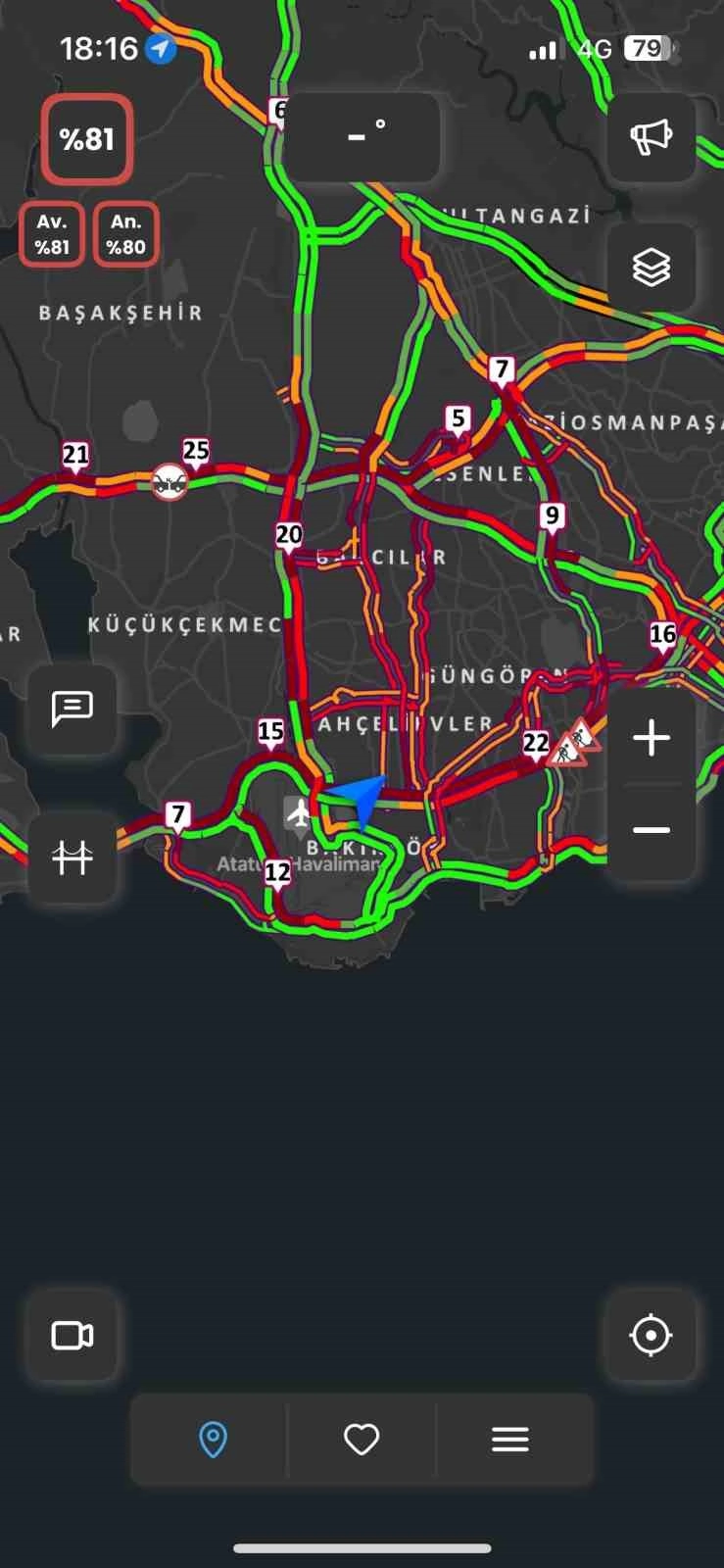 İstanbul’da haftanın ilk günü iftar öncesi İstanbul Büyükşehir Belediyesi Trafik Yoğunluğu Haritası verilerine göre trafik yoğunluğu yüzde 81 olarak ölçüldü.