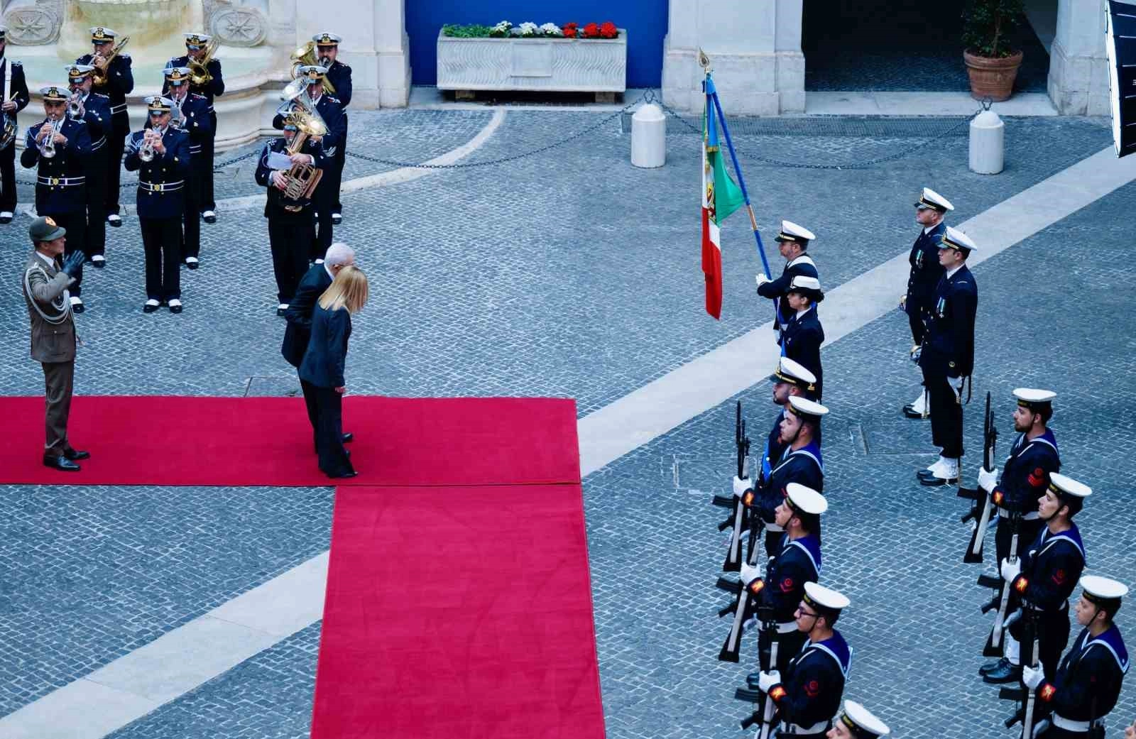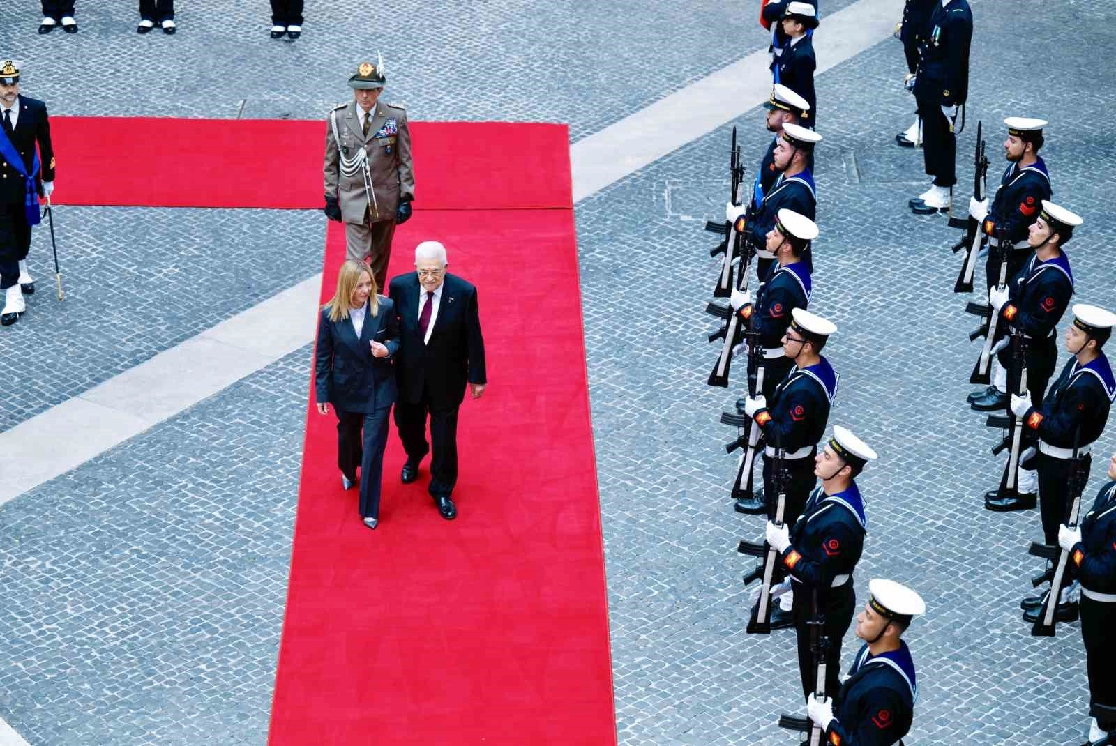 Abbas, Meloni ve üst düzey İtalyan yetkililer tarafından tören kıtası ve askeri bando ile karşılandı.