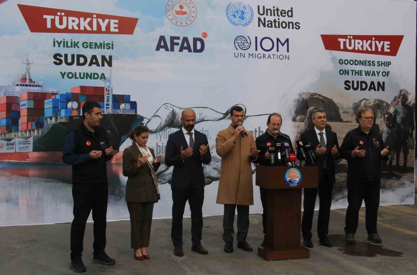 Mersin Limanı’ndaki uğurlama töreninde konuşan AFAD Başkanı Ali Hamza Pehlivan, "Sudan için de geçtiğimiz yıllarda olduğu gibi bu yaşanan krizin aşılması, özellikle de zorluk içerisinde olan, yerlerini terk etmek durumunda olan insanların gıdaya ihtiyacı olan, suya ihtiyacı olan, barınmaya ihtiyacı olan insanların, oradaki kardeşlerimizin bu ihtiyaçlarını gidermek adına adımlar atıyoruz. Ve bu adımların bir göstergesi olarak bugün iyilik gemimizi ve gemilerimizi Sudan’a uğurluyoruz" ifadelerini kullandı.