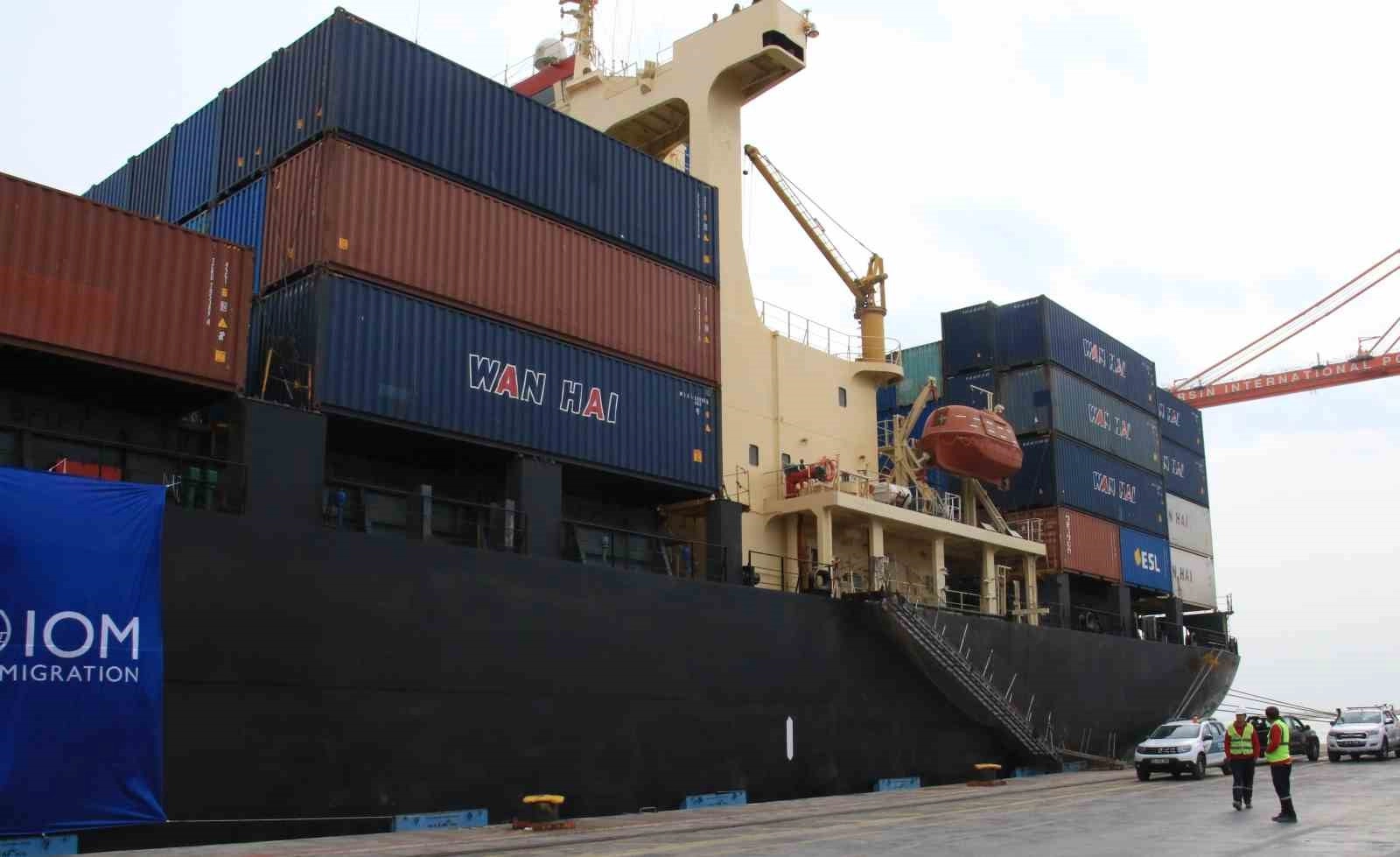 ‘NZ NINGBO’ isimli ’İyilik Gemisi’ni, AFAD Başkanı Ali Hamza Pehlivan, Mersin Valisi Atilla Toros, BM Göç Örgütü Sudan Misyon Şefi Muhammed Rıfat, AFAD görevlileri ile il protokol üyeleri uğurladı.