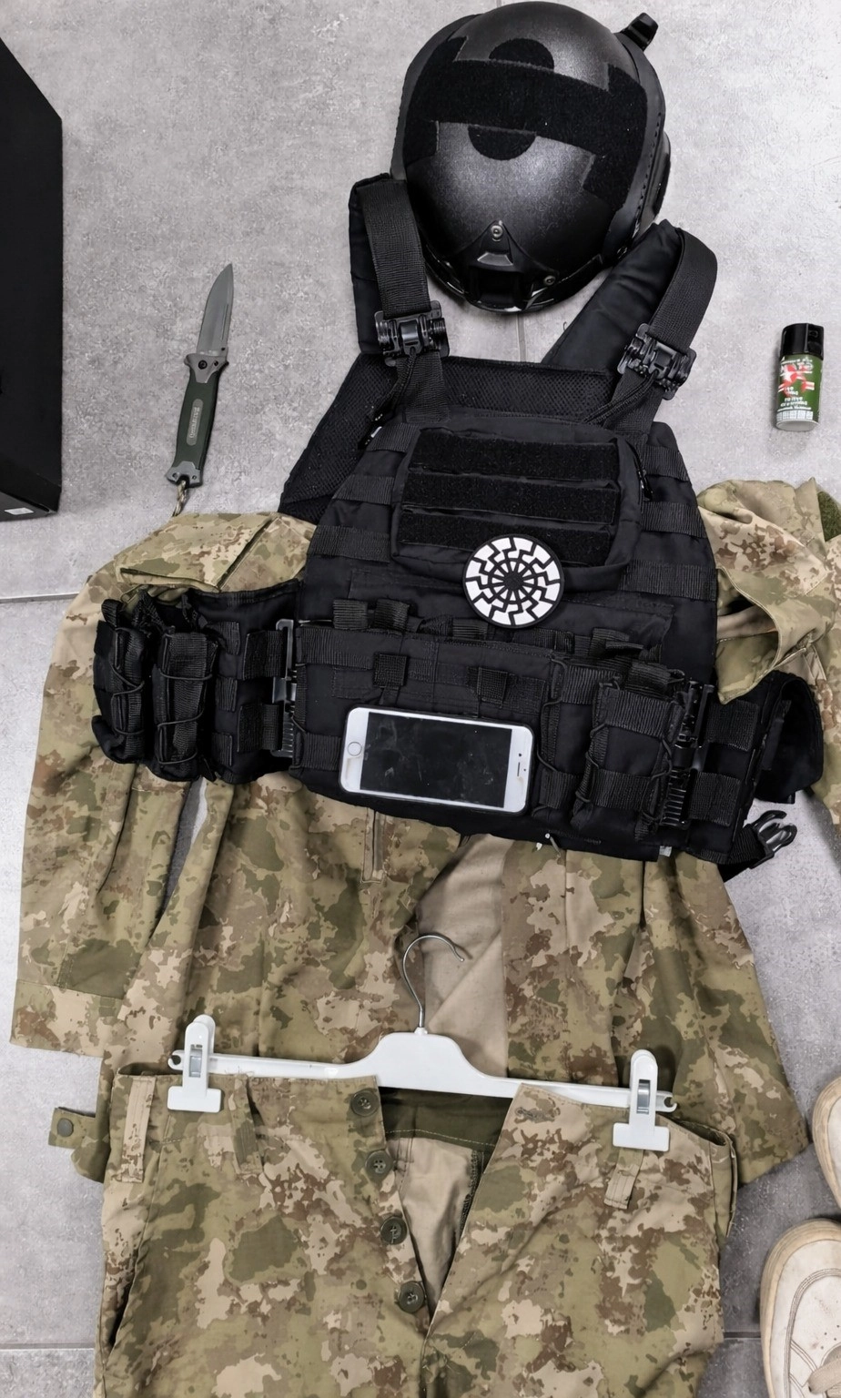 Yapılan aramalarda şahsa ait olduğu belirlenen askeri kamuflaj, hücum yeleği, kompozit başlık, biber gazı ve bıçak ele geçirildi. Ayrıca 2 adet bilgisayar kasası ve bir cep telefonuna incelenmek üzere el konulduğu öğrenildi. Şahıs ekiplerce adliyeye sevk edildi.