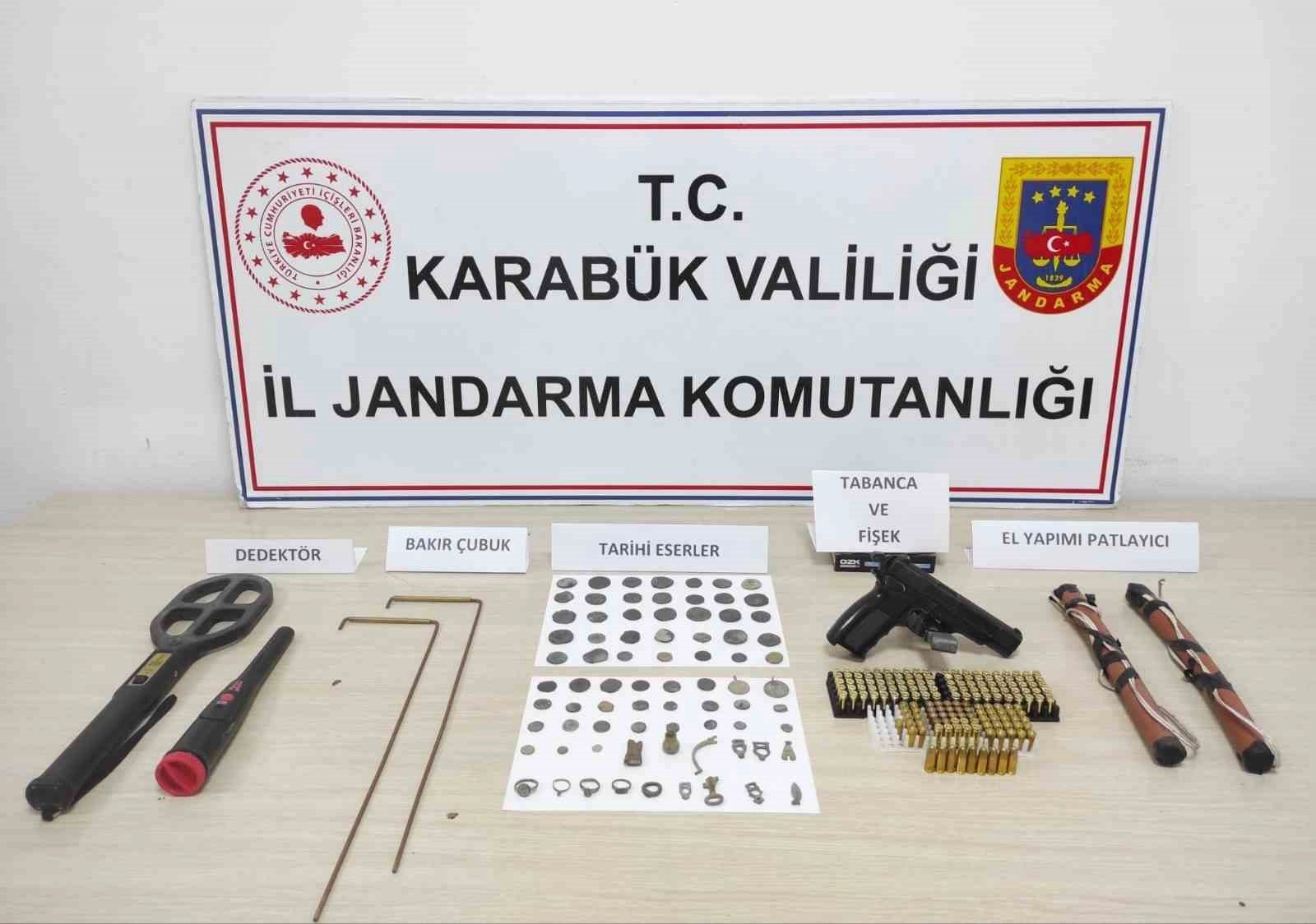 Karabük’ün Safranbolu ilçesinde jandarma ekiplerince düzenlenen operasyonlarda Antik Mısır dönemine ait olduğu değerlendirilen heykel ile çok sayıda tarihi eser, silah ve patlayıcı madde ele geçirildi.
