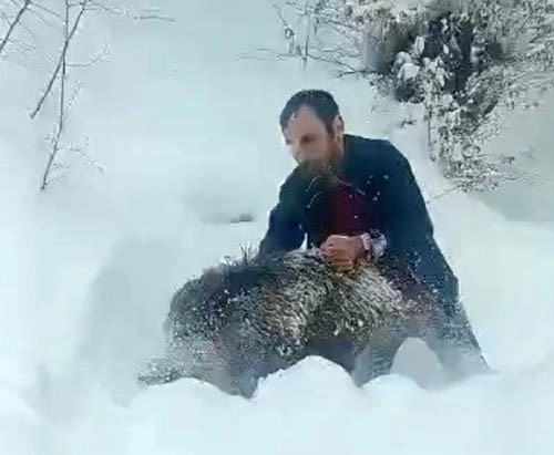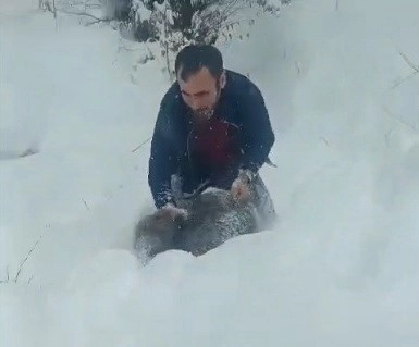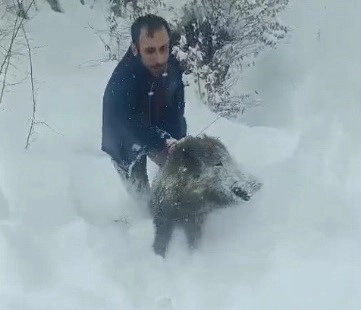 Sinop’un Erfelek ilçesinde karlı yolda karşılaştığı yaban domuzu sürüsünden bir yavruyu araçtan inerek kovalayıp eliyle yakalayan vatandaş, sosyal medyada büyük yankı uyandıran görüntülere ilişkin konuştu.