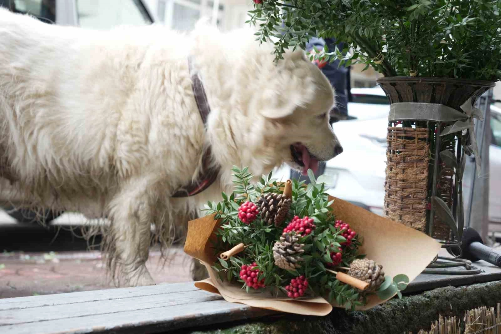 Kocaeli’nin İzmit ilçesinde bir çiçekçi dükkanında sipariş için hazırlanan kokina buketi, kurye gelmeden önce sokak köpeği tarafından götürüldü.