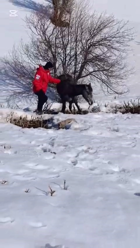 Duyarlı iki vatandaşın ihbarı üzerine, Bingöl’ün Solhan ilçesi Beşevler Mezrası kırsalında yer yer 1 metreyi bulan kar örtüsü altında kurt sürüsünün saldırısına uğrayarak yaralanan at için AKUT Bingöl ekibi harekete geçti.