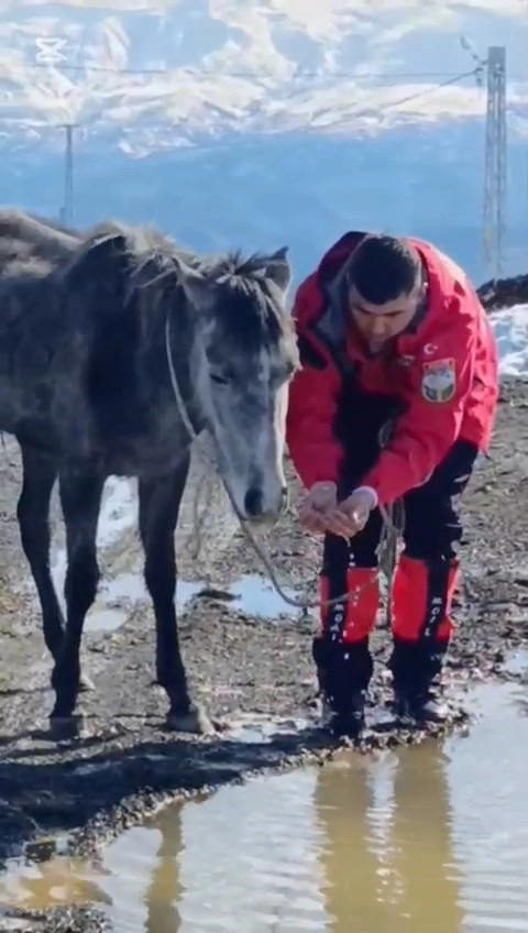 Yer yer 1 metreyi bulan kar kalınlığı ve engebeli arazi şartlarına rağmen ekip, yaklaşık bir saat süren zorlu bir mücadelenin ardından yaralı atı bulunduğu noktadan alarak yürütmek suretiyle köy yoluna ulaştırdı.