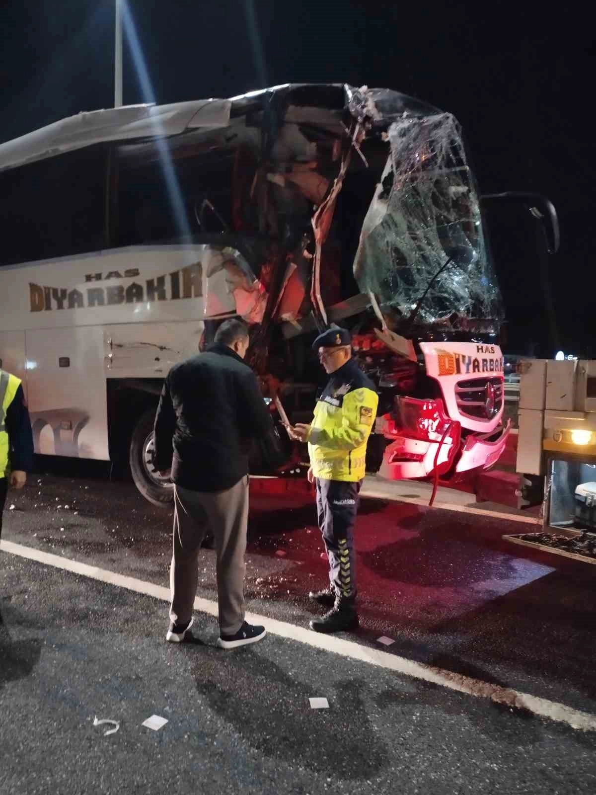 Edinilen bilgiye göre, içerisinde 12 yolcunun bulunduğu yolcu otobüsü, aynı istikamette seyir halinde olan tıra arkadan çarptı. Kazada 10 kişi yaralandı. İhbar üzerine olay yerine çok sayıda itfaiye, polis, jandarma ve UMKE ekibi sevk edildi.