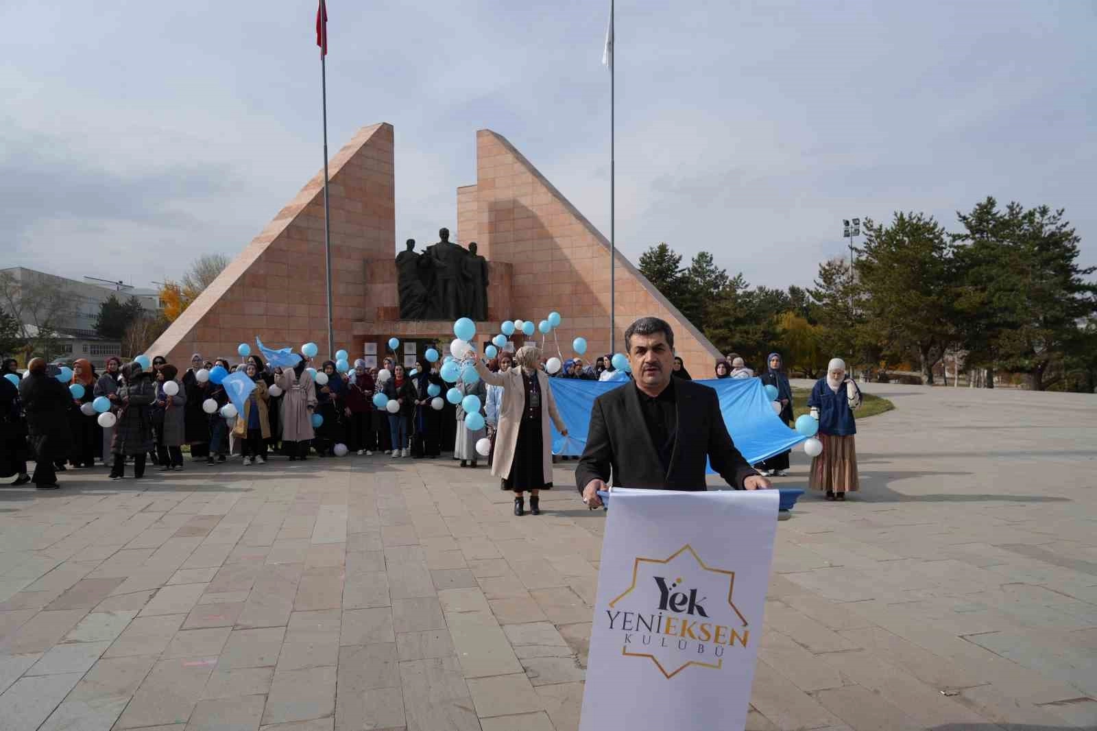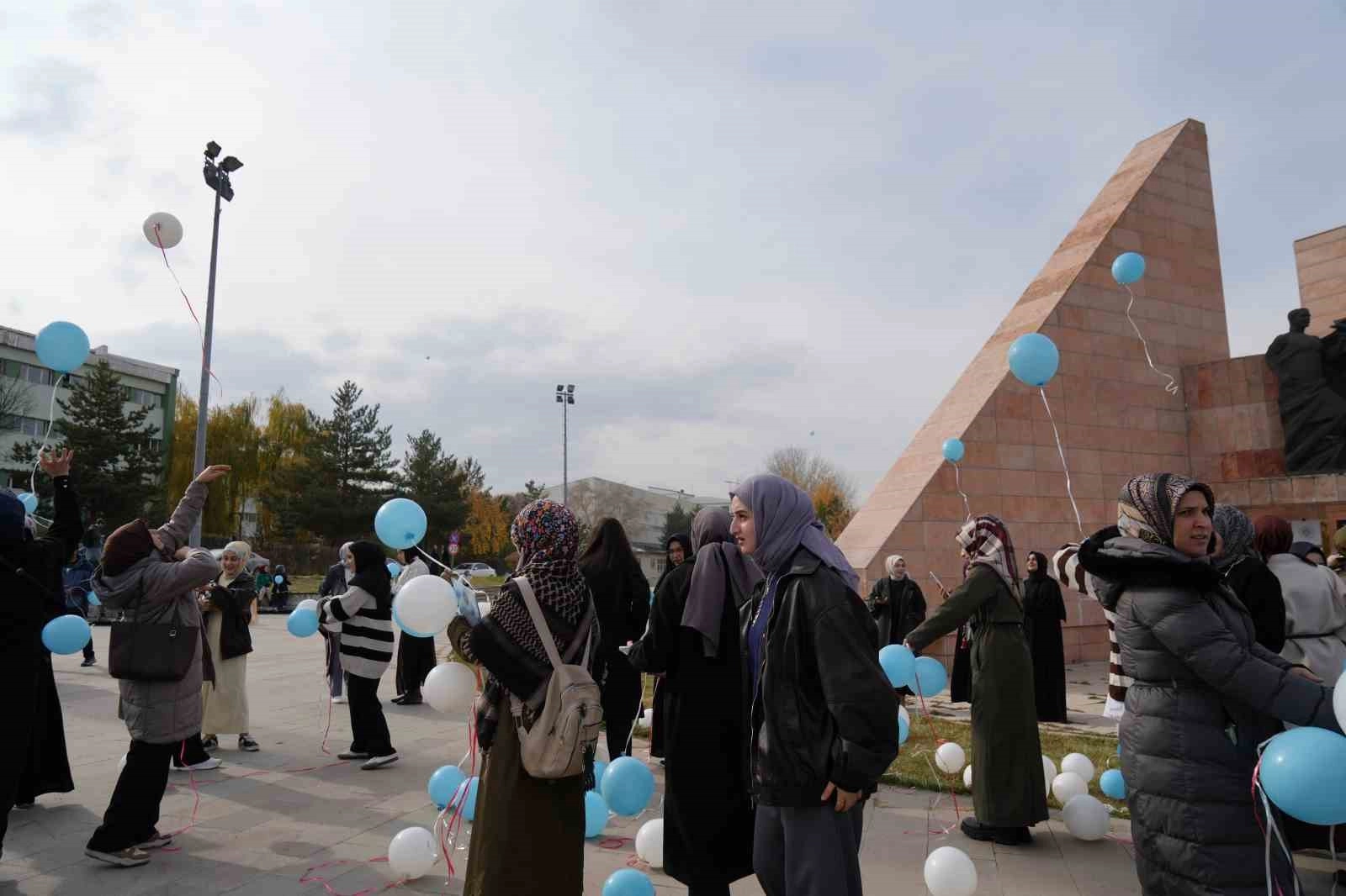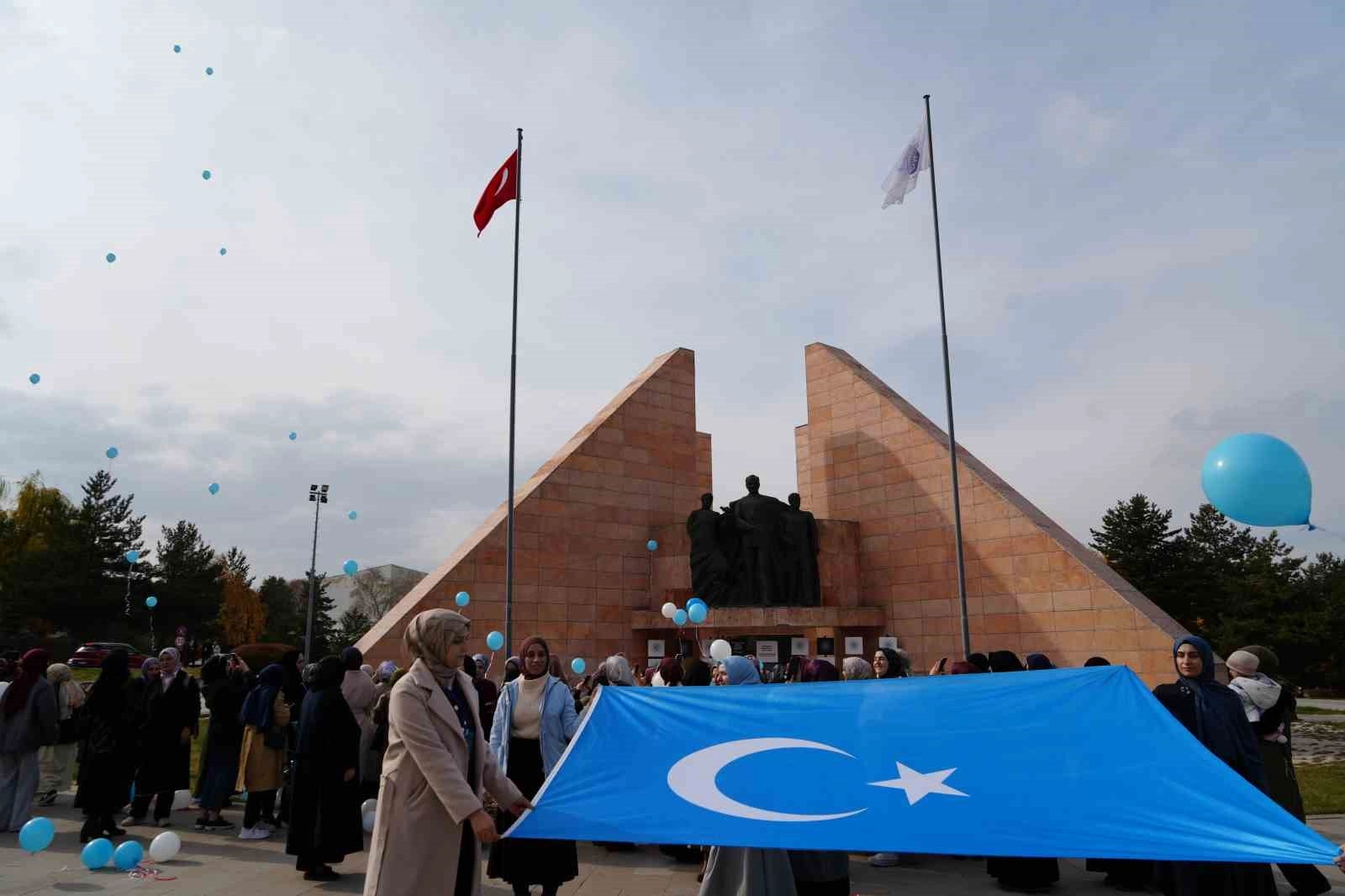 Atatürk Üniversitesi İlahiyat Fakültesi öğrencileri, gökyüzüne mavi beyaz balonlar bırakarak Doğu Türkistan’da yaşanan zulme dikkat çekti.