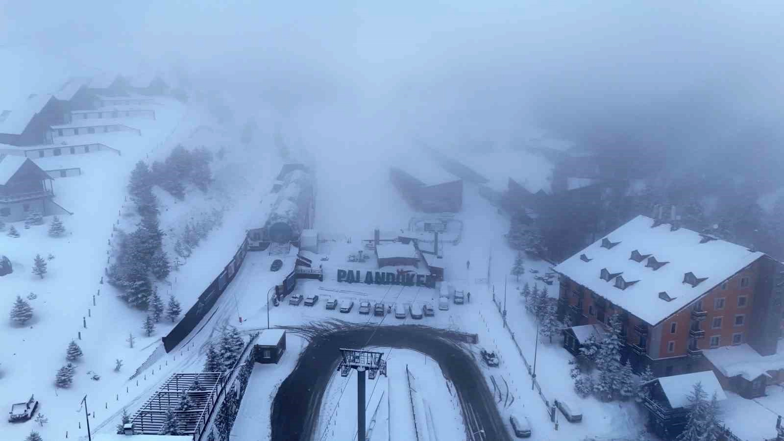 Palandöken Kayak Merkezi’nde 10 Nisan Cuma günü başlayan yoğun kar yağışı, hafta sonunda da etkisini sürdürerek bugün öğle saatlerine kadar devam etti.