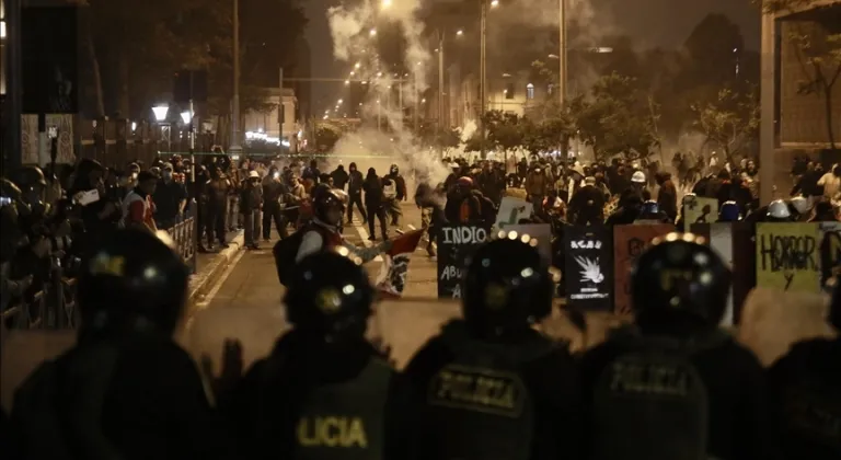 Devlet Başkanı Dina Boluarte'nin görevinden azledilmesinin ardından hükümet karşıtı protestolar düzenleyen göstericiler ile Peru Ulusal Polisi karşı karşıya geldi.