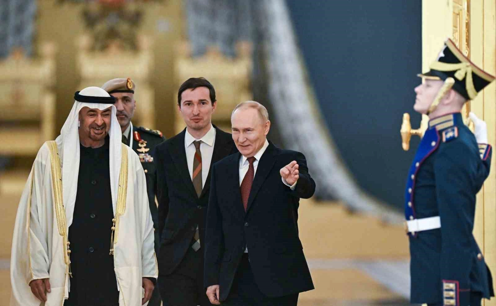 Al Nahyan ve Putin daha sonra Kremlin Sarayı’nın Aziz George Salonu’nda ikili görüşmeye geçti. Görüşmede çok yönlü Rusya-BAE iş birliği, Orta Doğu’daki güncel durum ve uluslararası konular yer aldı.