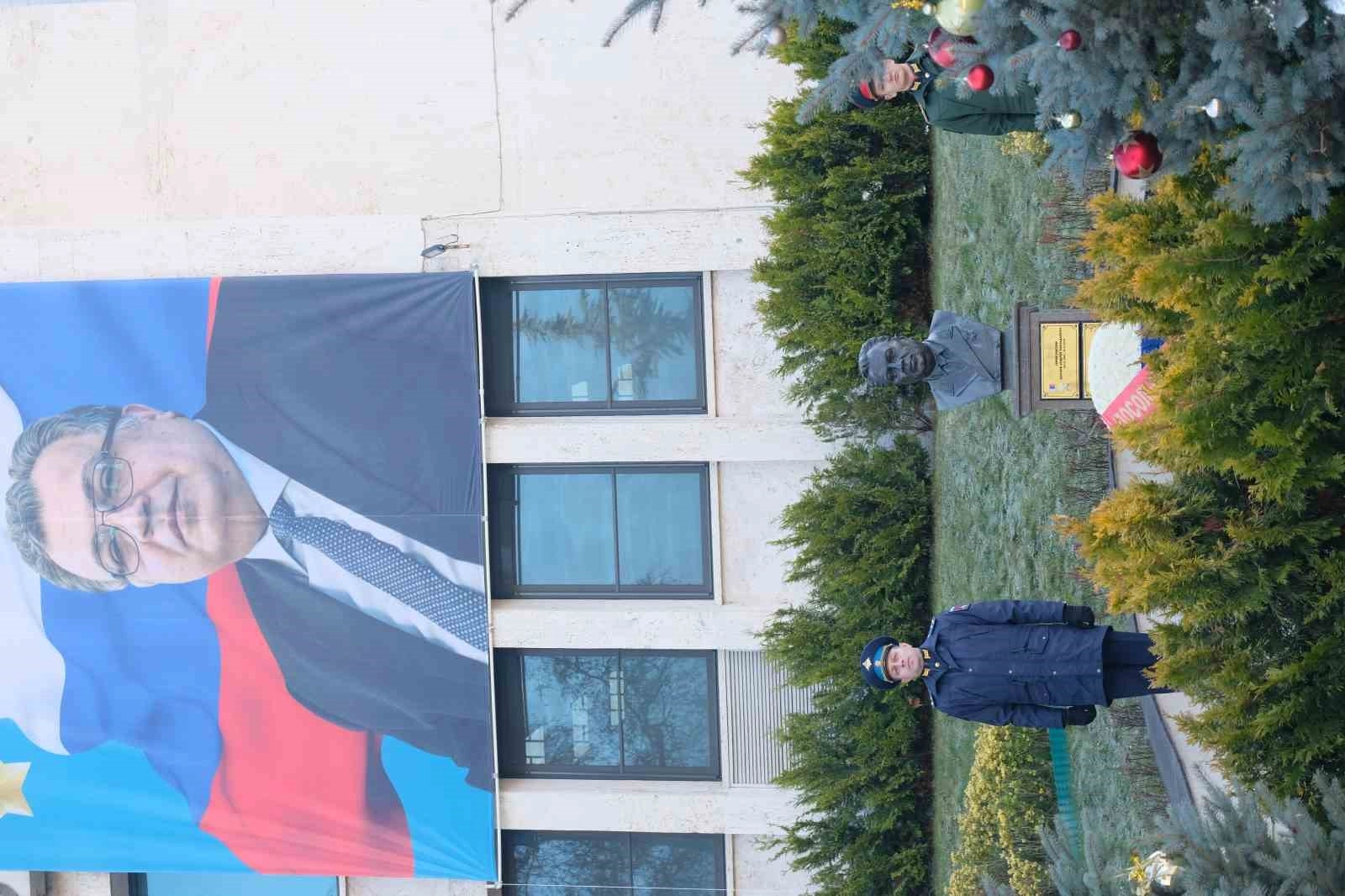 Büyükelçilikte bulunan Karlov anıtına çiçekler bırakıldı.