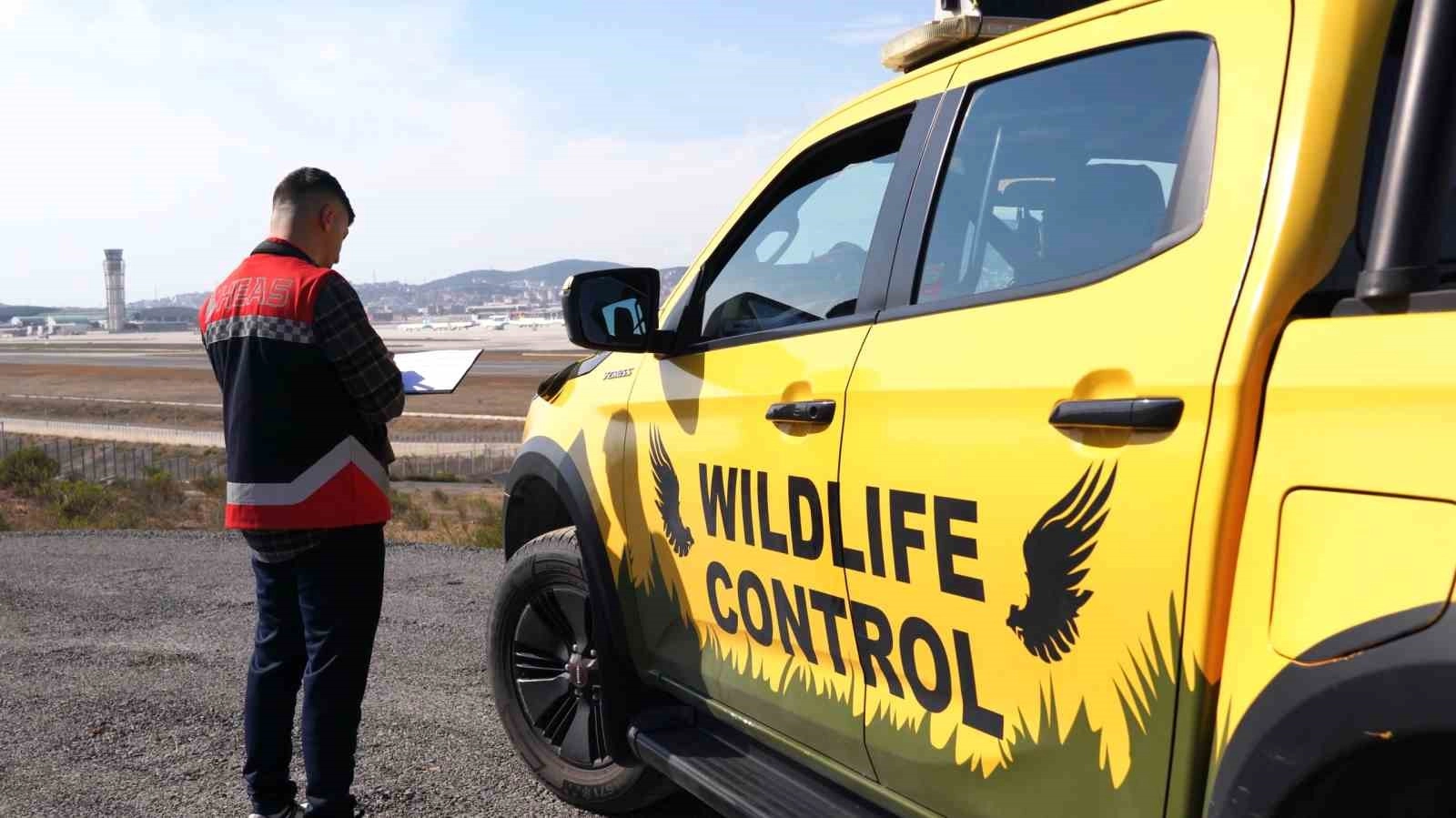 Havalimanı sahasında görev yapan ekipler, araçlı devriye ve anlık gözlem faaliyetleriyle kuş ve yaban hayvanlarının uçuş hattına yaklaşmasını önlüyor.