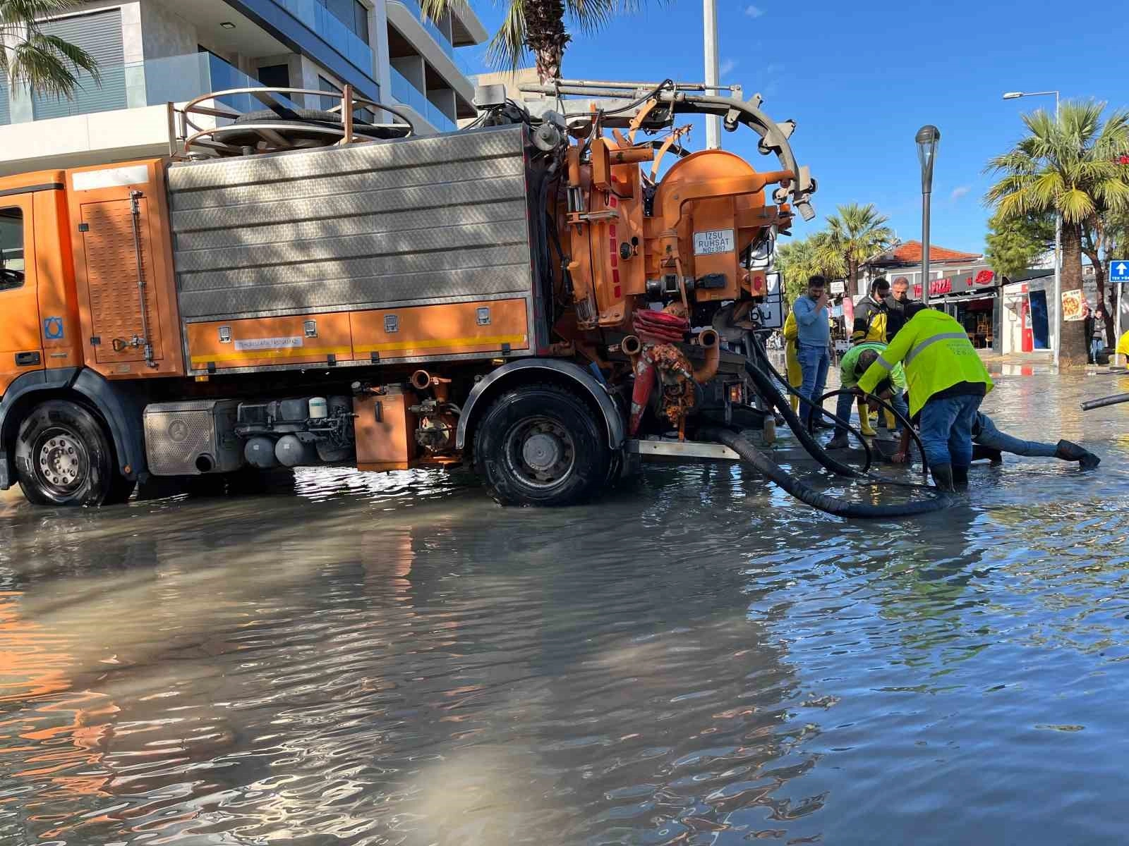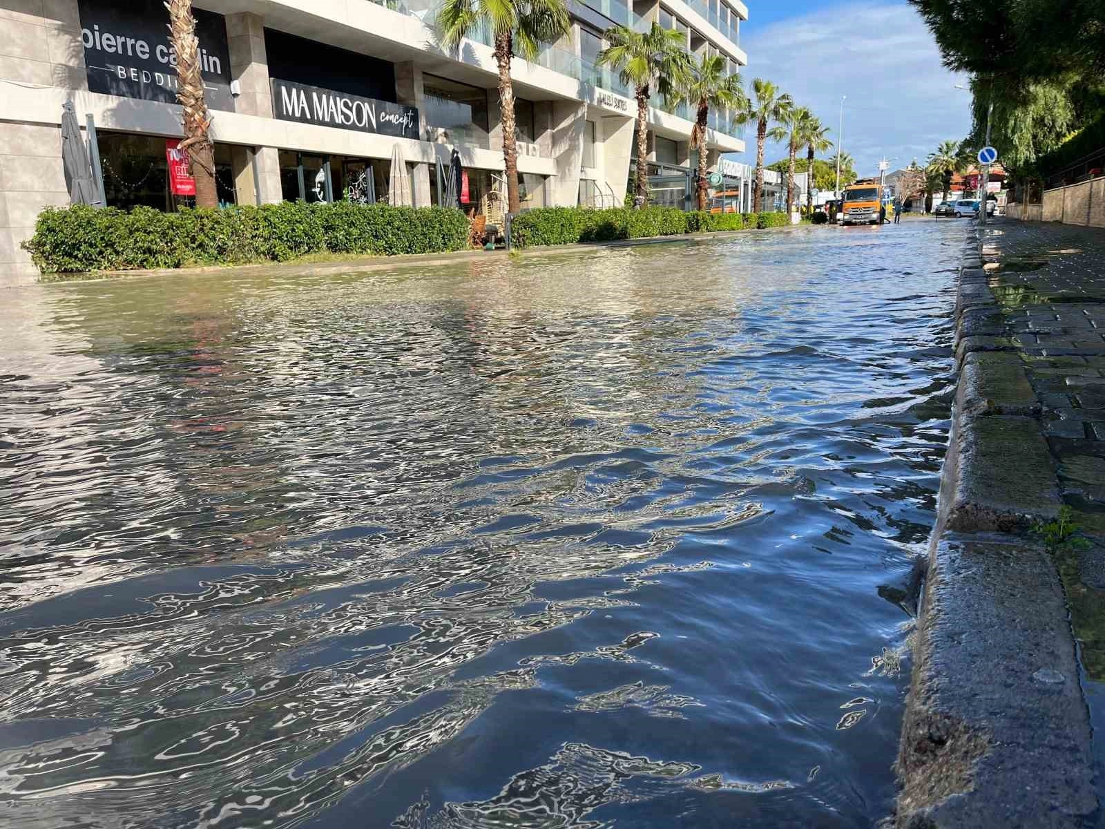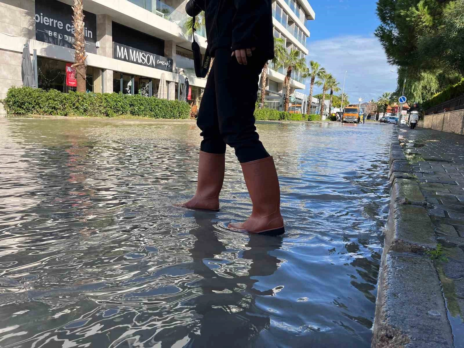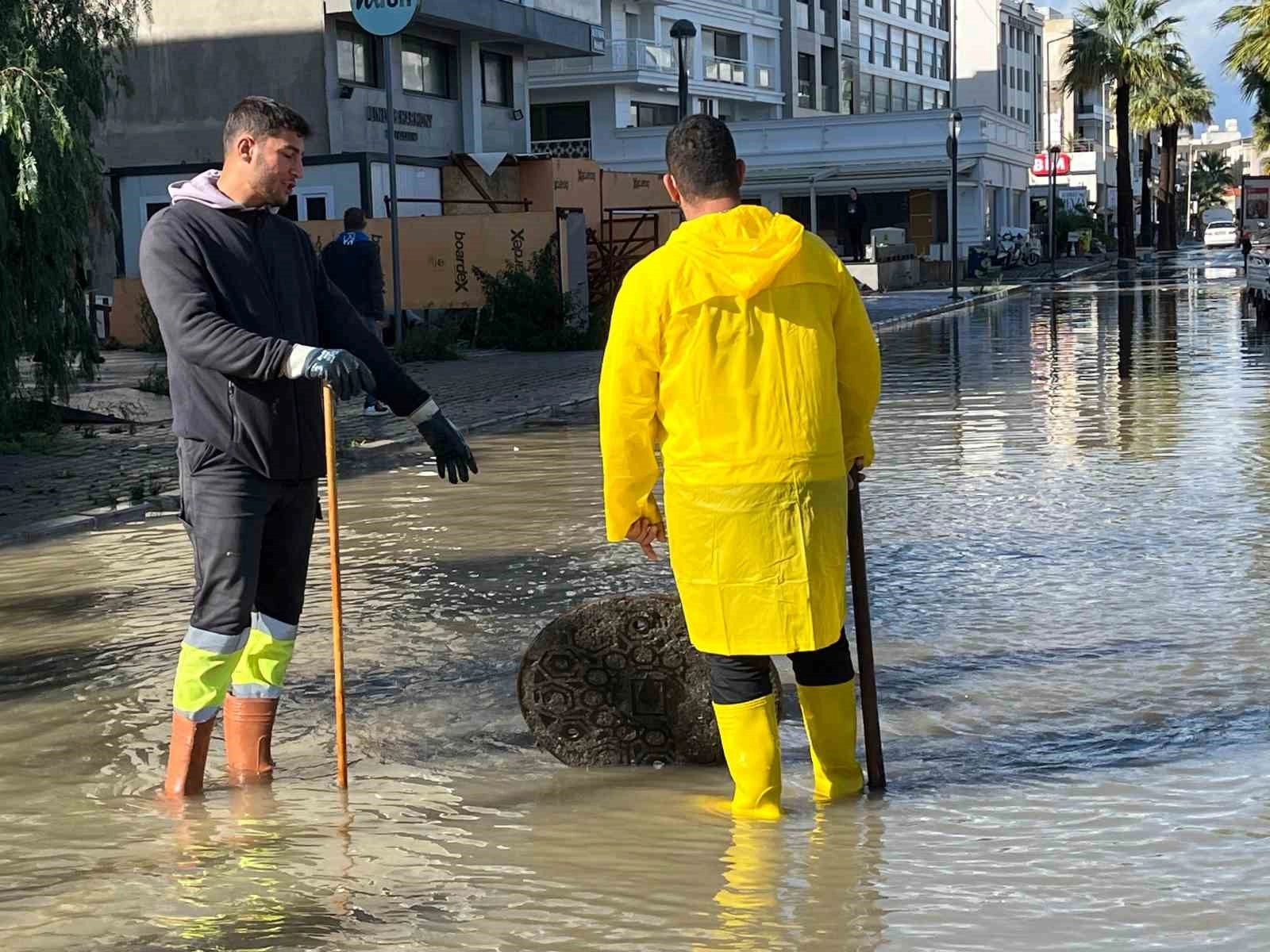 Şiddetli yağışın etkili olduğu Çeşme’de deniz seviyesinin yükselmesi ve tahliye hatlarının tıkanması nedeniyle ilçe merkezinde su baskınları yaşandı. İlçede hayat olumsuz etkilendi.