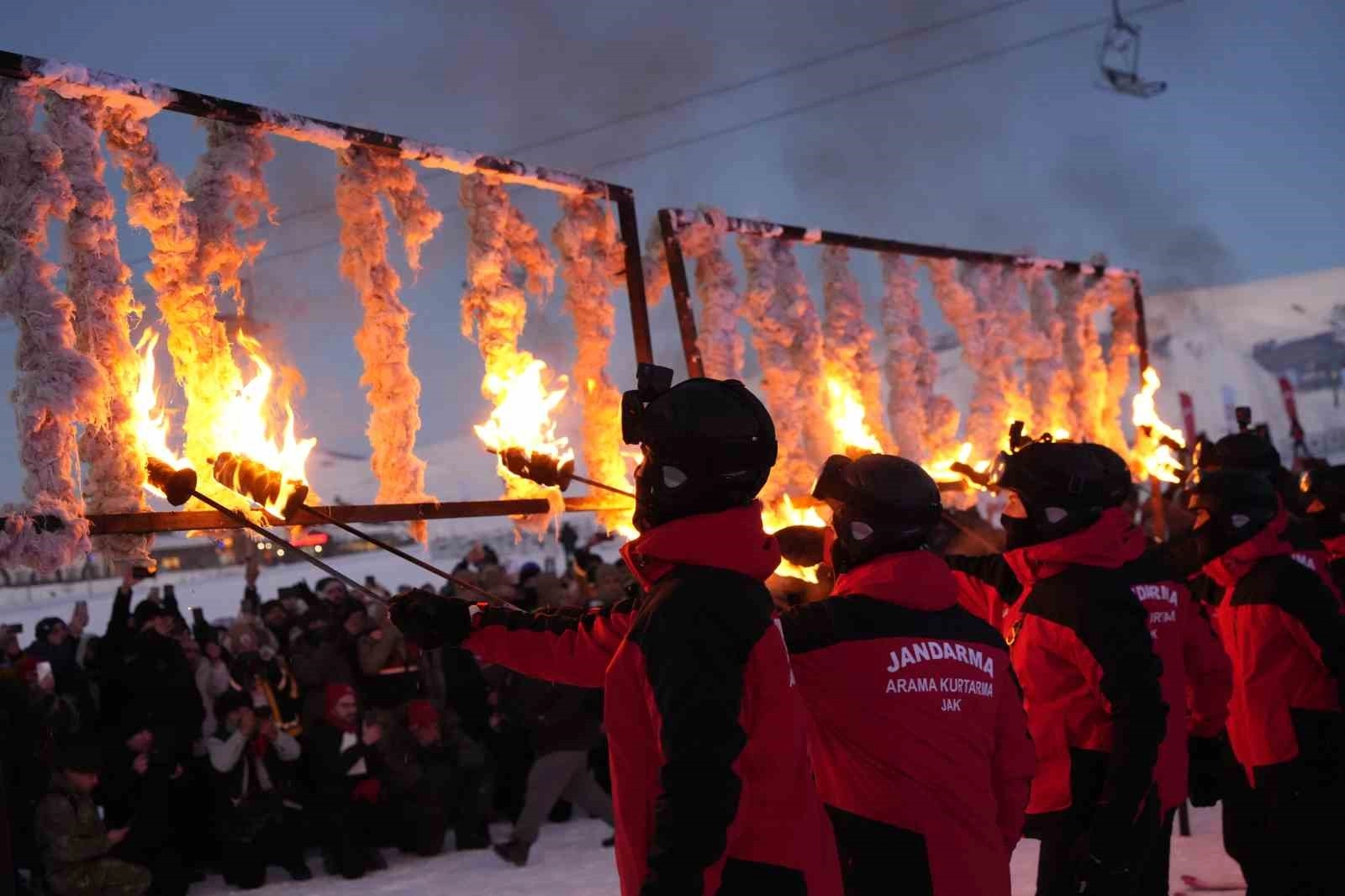 Kars’ta Sarıkamış Harekatı’nın 111. yılı dolayısıyla Jandarma Arama Kurtarma (JAK) timleri meşaleli kayak gösterisi yaptı.