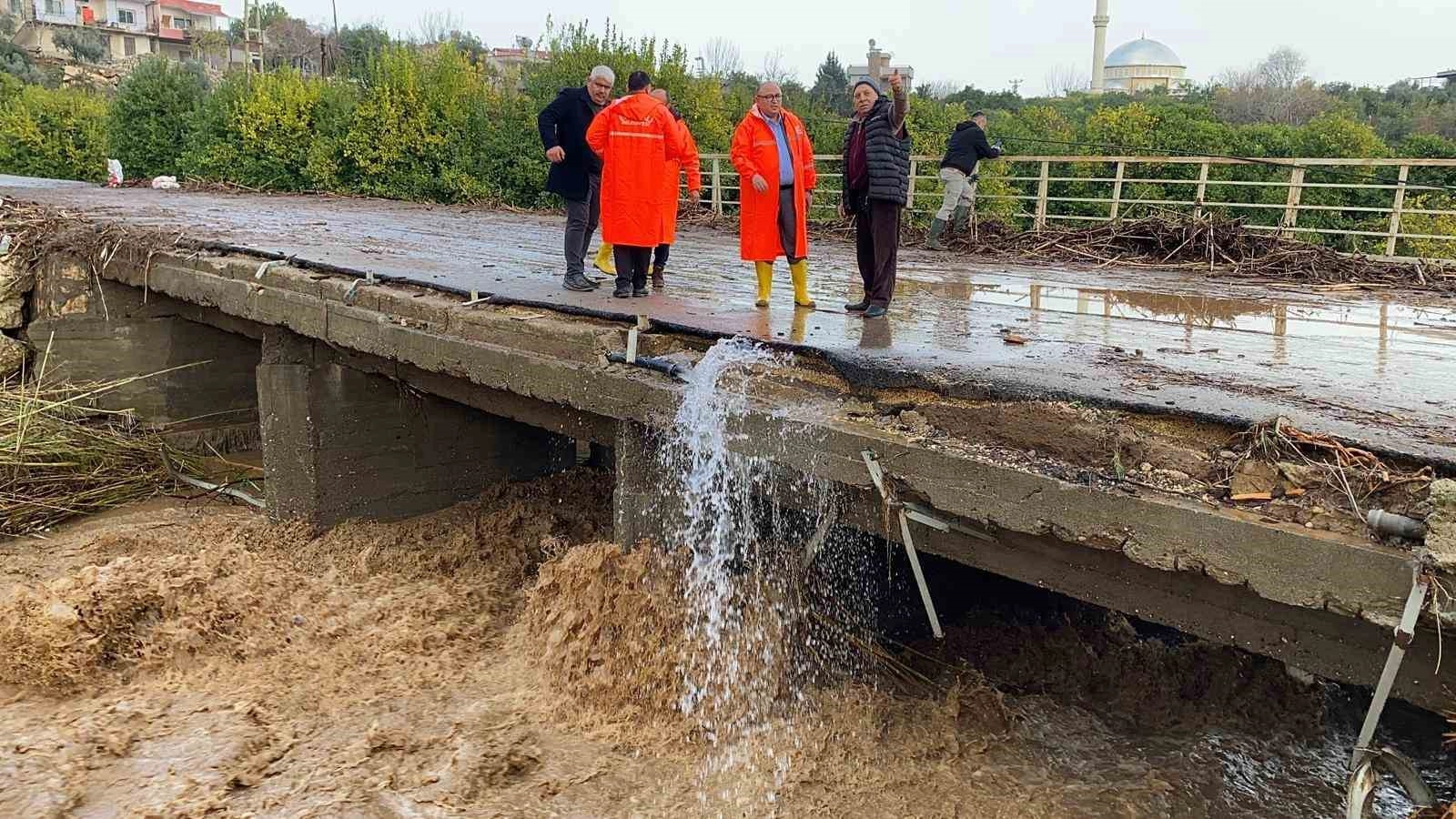 Yaşanan sel felaketinden en çok etkilenen bölgelerden biri olan Erdemli ilçesinde Dağla Mahallesi’ndeki bir menfez köprü yıkılırken, Doğusal Mahallesi’nde bulunan Seriyer Deresi’nde bir vatandaş su taşkını nedeniyle mahsur kaldı.