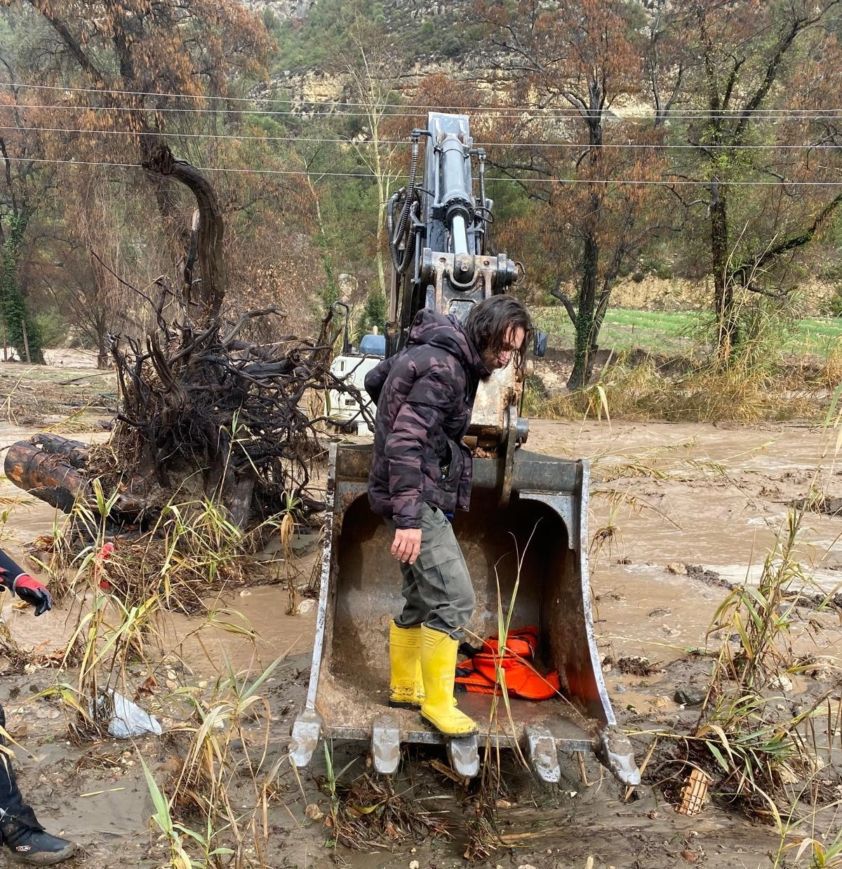 Mersin ve ilçelerinde etkili olan sağanak yağış sele neden olurken, taşkın nedeniyle dere kenarında mahsur kalan bir kişi kepçe yardımıyla kurtarıldı.