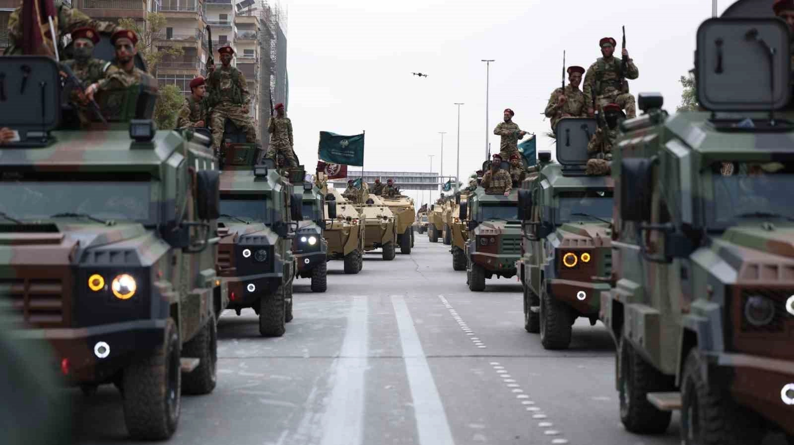 Kalabalıklar tarafından coşkuyla izlenen askeri geçit töreni, bölgede sürekli uçuş yapan helikopterler eşliğinde Emevi Meydanı’na, oradan da Gümrük Meydanı’na kadar devam etti.