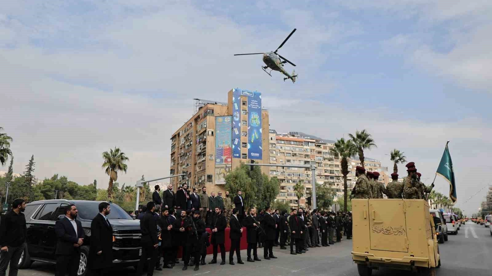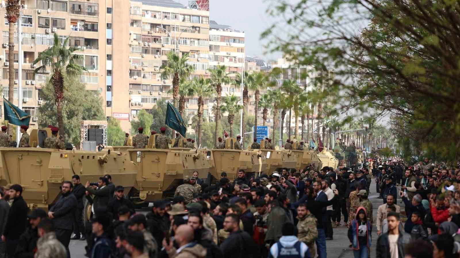 Suriye’de Esad’ın devrilmesinin ilk yıl dönümünde kutlamalar devam ederken yeni ordunun geniş katılımıyla gerçekleştirilen geçit töreni bir gövde gösterisine dönüştü.