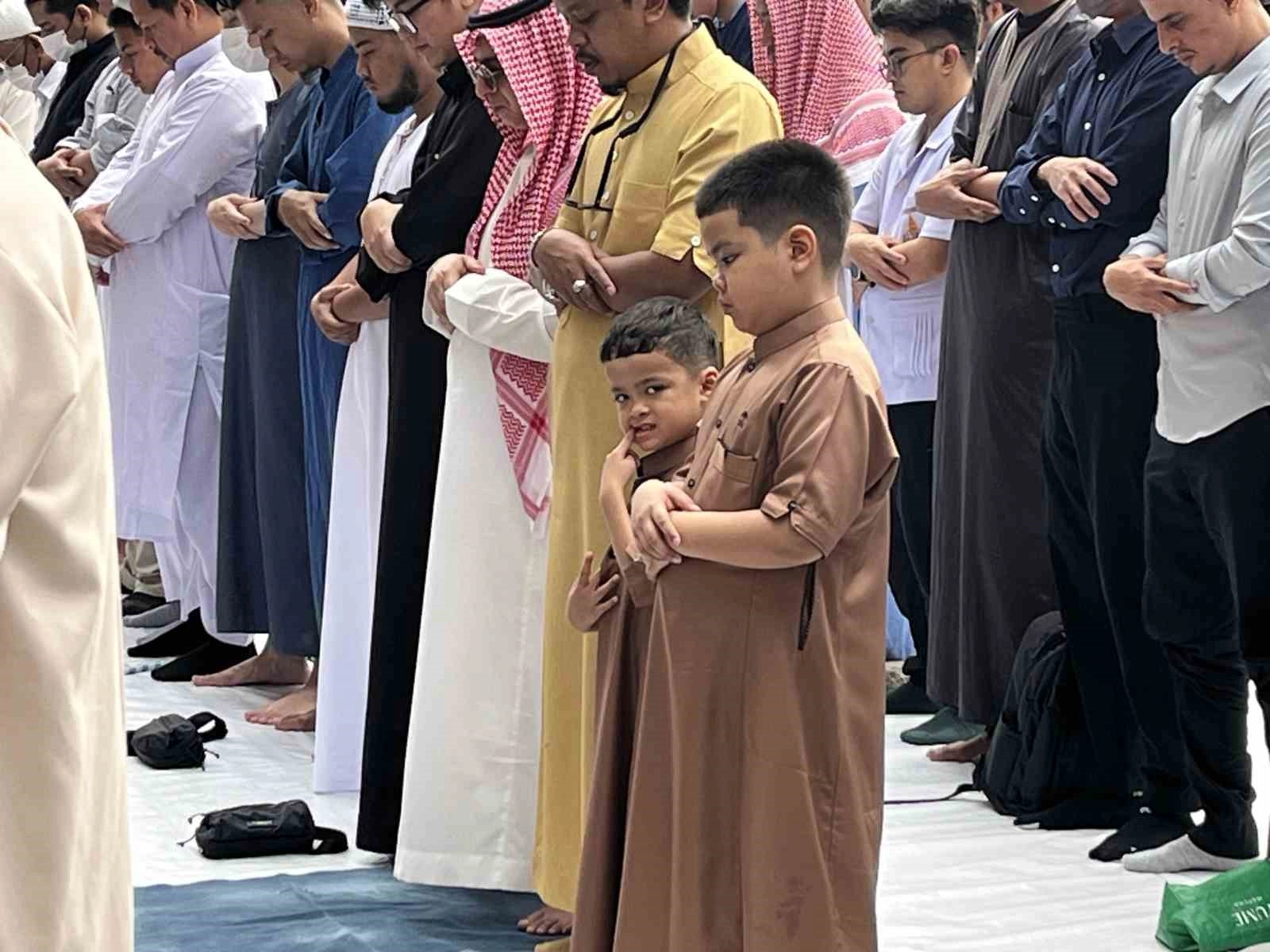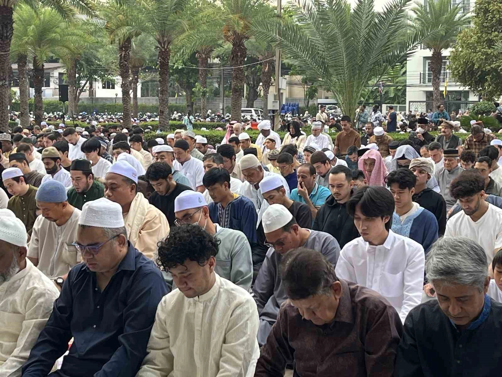 Caminin içi ve avlusu tamamen doldu. Hava sıcaklığının 30 derecenin üzerinde seyretmesi nedeniyle caminin kapalı bölümü kadınlara ayrıldı. Geleneksel kıyafetlerini giyen Taylandlı müslümanlar ve farklı ülkelerden gelen yabancı mMüslümanlar namaz sonrası cami avlusunda toplanarak bayramlaştı ve hatıra fotoğrafı çektirdi.